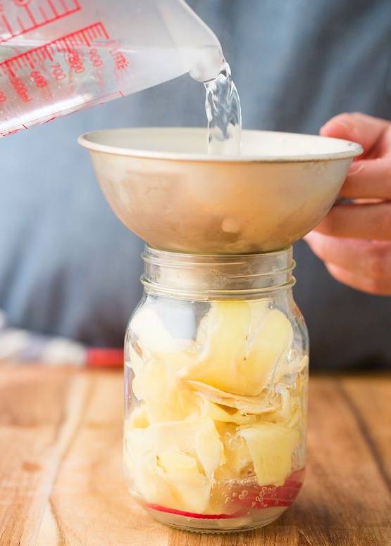 : h- c, N, z0 v3 s4 |8 p4 w! y做法:取250g生姜切片放入瓶中,加入米醋没过生姜泡3天即可食用。平时储存在冰箱中,坚持每日早晨7-9点吃上3片,连续2个月功效显著。