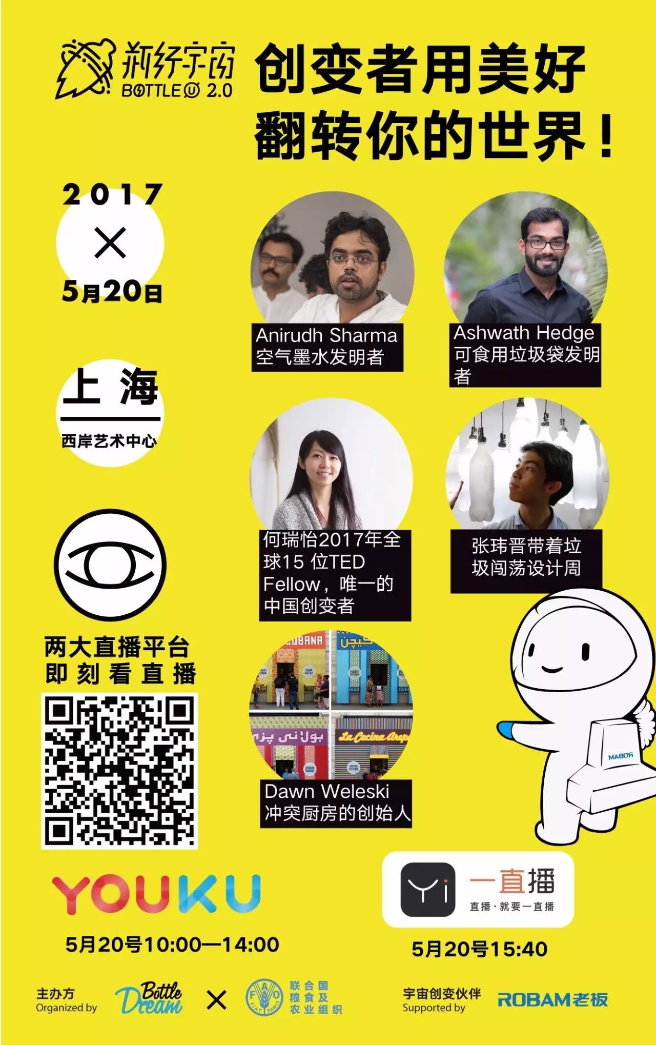 当天10:00-14:00, 优酷直播记录了全场活动; 下午15:40, 一直播揭秘了全球最酷创变者大会, (直播ID:81138658); 热爱创变的你可以观看回放视频, 共同见证大会的全过程!