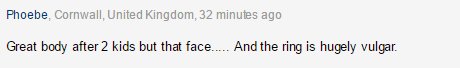 “有俩娃之后身材依旧这么好,但是这脸吧……戒指很庸俗。” 好了,木有钻戒但身材还是要管理一下的。范友们今天锻炼了么?