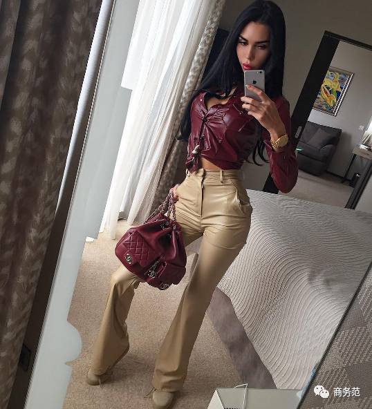 这张皂片的重点也不在Versace手袋上。范主已经被红高跟、红皮裤、红毛衣,以及白毛毛背心营造出的圣诞氛围,(゚Д゚≡゚Д゚)惊呆了。