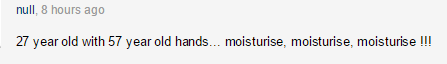 “27岁的年纪,57岁的手,注意保湿啊、保湿、保湿。” $ q+ h7 @2 ?2 e6 E' T/ G) {0 \