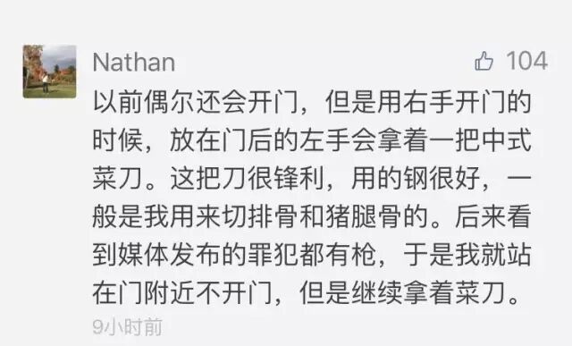 还有网友表示,现在他开个门都会小心翼翼,带上"武器":