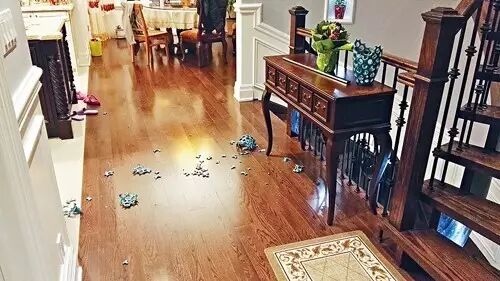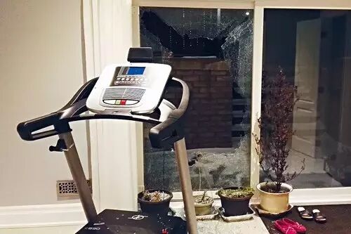 不法分子趁她一家三口出门在外时,砸烂地下室玻璃门进入房间。