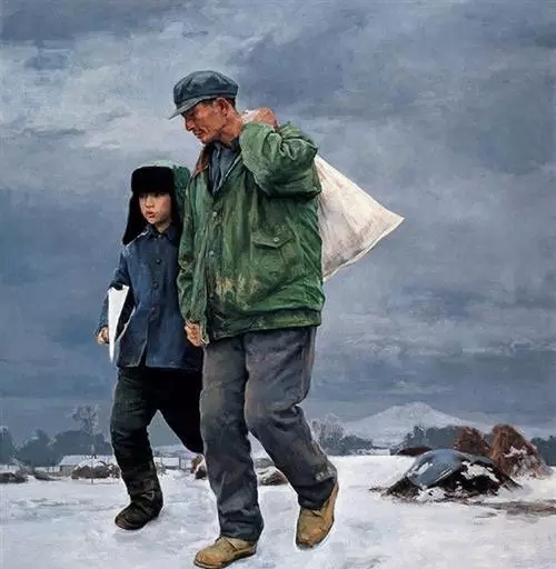 20世纪80年代初,罗中立以一幅《父亲》震惊中国画坛,该作品以纪念碑式的宏伟构图,饱含深情地刻画出中国农民的典型形象,深深地打动了无数中国人的心。画中这位纯朴的农人也许是作者对父亲及终年耕作土地的默默感恩。画家用浓厚的油彩,精微而细腻的笔触,塑造了一幅感情真挚、纯朴憨厚的父亲画面,即使没有斑斓夺目的华丽色彩,也没有激越荡漾的宏大场景,但作者依然刻画得严谨朴实,细而不腻,丰满润泽。