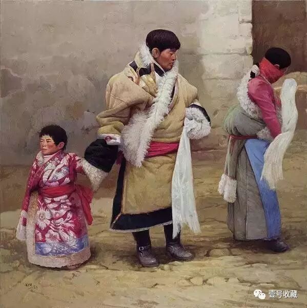 饱含激情的大笔触和大色块,刻画出饱经沧桑的藏族父子纯真与善良,刻意凸显藏民的质朴、野性、粗犷、原始、空灵、神秘。一方面强烈地表现出了藏民的人性化的情感,同时也描绘了他们世界的粗犷纯朴的真实。 1 P; Z' b! c' K