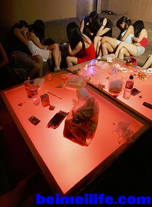 Agence France-Presse — Getty Images 广东东莞一次扫黄中,警察在某娱乐中心扣留的性工作者。 9 ^! M, V6 A! B. Q. K( n