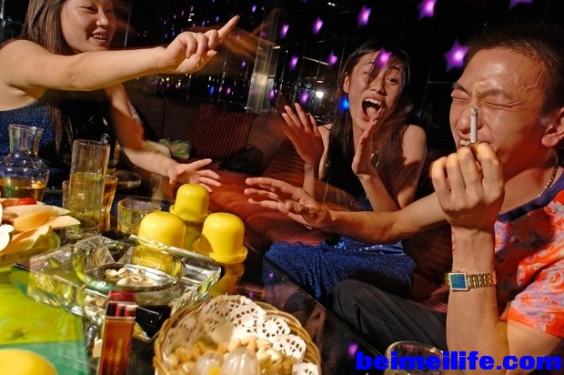 也许这就是为何有的老板会要求对方有更加公开的表现。最为终极的形式便是参与者们所谓的频繁的搞群交,参与的男性在人数上通常要多于女性参与者。共享女人似乎能以一种变态的亲缘方式,拉近男人之间的关系。就像一句东北人的俗话:“两个男人玩过同一个女人后,就是兄弟了。”为了建立共同信任,在这些小规模的乱交活动中,往往会拍照,但这些照片也为日后的相互牵制提供了充分的要挟材料,一旦遭到曝光,效果必然是爆炸性的,像2012年,就在网络上流出了一伙脑满肠肥的政府官员在2007年的胡搞照片。 尽管从未有人明确地表达过,但这类活动往往好像将同性间的社交行为推向了同性间的色情活动。山姆(化名)是一名40岁出头、英俊的美国人,娶了一位千万身家的中国太太。他对我说了今年早些时候的一件事。“她有个朋友开了这家新的电影院,我们(这些男人)便在晚餐过后去庆祝。我们去了一家顶级的妓院,那里的小姐啊,嘿,你简直想不到她们是有多漂亮。于是这两个人――其实我烦他们烦得要死,但是他们却认定我是他们的好哥们――就说,‘山姆,来选一个。随便哪个。然后让我们看着你和她做。’我说,‘才不要!我可不要对不起我太太,就算我愿意,我也不会让你们在一旁看。’” 集体嫖娼也能直接体现出一个男人在一个团体里的相对地位。有个朋友的丈夫以前曾在陕西从事煤炭行业,他是这么说的:“你和这群自以为是的暴徒们一起去了那里(KTV里)。由他们当中的一个挑名小姐,然后上她,其他人都得在现场看。在场地位最高的老板会先上。至少结束得很快。”接下来,团体中的其他成员不得不也依样行事。他还说,那些无法在其他人面前这么做的人,会遭到大家的嘲笑。 在这样的社交场合下,那些陪客的年轻女郎不过是种道具,被用在一场主要针对其他男性的仪式里。她们的工作内容也包括聊天,这能够保护她们免受某些形式的虐待,也能确保她们在一个晚上只需要会见一到两名顾客。对于这种直奔主题的性行为,惯例做法是只报上自己的编号,而不会提及名字。(“我是16号,下次请还要叫我啊。”)但是,在坐台陪客的时候,她们会报上自己的花名,通常会是一个故作“可爱”的名字,带着刻意性感的小可爱,使用叠字(“丽丽”、“毛毛”)或者带个“小”字(小雪、小花),甚至是英文名字。 但是集体嫖娼却剥除了她们的这些防护手段。“我们讨厌伺候一个以上的男人,”曾在KTV做陪唱小姐的珊珊(音译)为我解释道,“男人越多,女孩子越不安全。只要房间里还有其他的男人(召妓),现场就会形成一种相互攀比的局面,他们也会变得更加粗鲁,就可能会真的弄伤这些女孩子。两个女孩子对一个男人,就要好得多。这样你还是拿同样多的钱,但是只要做一半的活儿。” 即使是有两名小姐相陪,她们的注意力也还是会完全放在男人的身上 。“可变态了!”珊珊在我问及时说道,“我们并不会相互碰触,那些男人们也不会要求我们这么做。但是两个女孩子的话,还可以趁男人没有注意的时候说说话,互相扮个鬼脸。所以女孩子们才总是会说:‘哎呀,我干脆去叫我的朋友一起过来好不好?我们两人一定会把您伺候得像皇帝一样!’在你进屋的时候,妈妈桑也会说:‘干脆就叫两个姑娘来陪嘛,像您这样的有钱人,就该享双倍的福!’” / \0 j' z( i" {