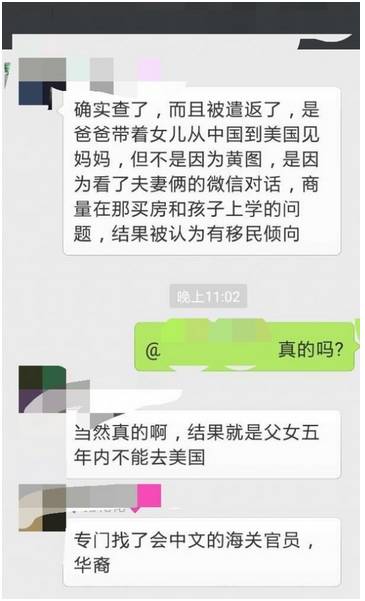 美国洛杉矶海关,当时是爸爸带着女儿去美国见妈妈,没想到在海关被查手机聊天。结果发现,夫妻俩的对话中有在美国买房、女儿在美国上学等信息,于是被认为有移民倾向,当场遣返,而且父女俩因此五年内不得入境美国。 来接老婆却说是旅游过关被套话