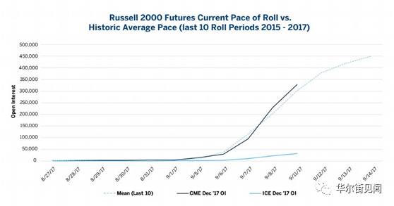 如果投资者目前在ICE做空罗素2000指数期货,则需要反过来操作。通过下图可以看到,目前CME的E Mini 罗素2000指数期货持仓量已持续攀升。