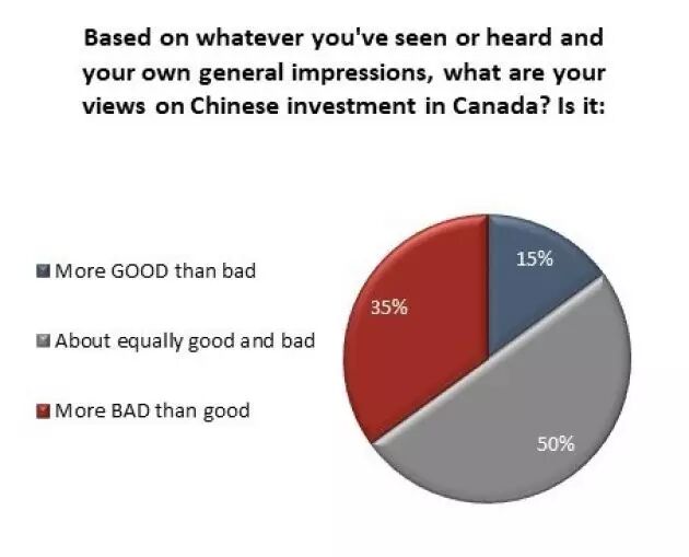 居外网的另外一项民调显示,加拿大人对中国投资感到“游移不定或者持怀疑态度”。