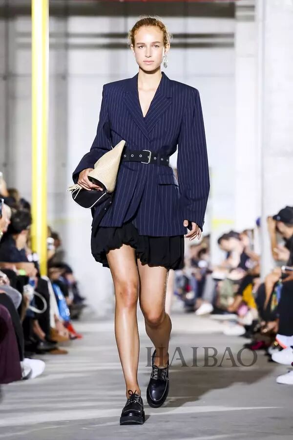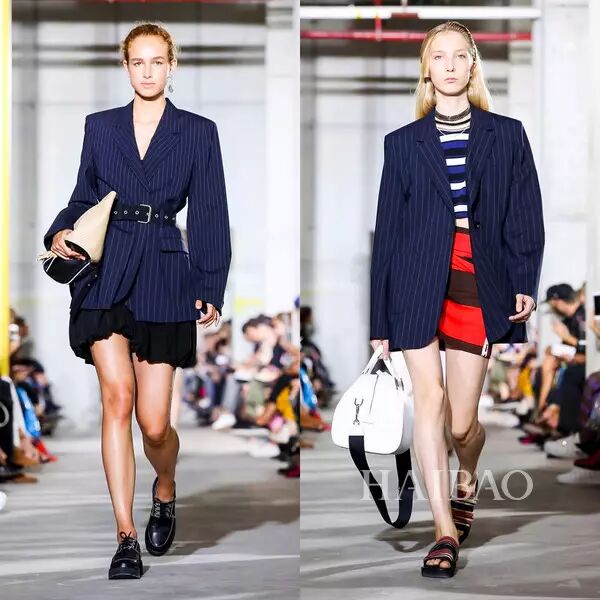 ( p4 S9 r, } P# e2 C9 j! U# K从男装获取灵感的复古条纹西服也是这一季的主打款,干练的结构和利落的细节是设计与功能性的调和,带来别样的帅气体验!