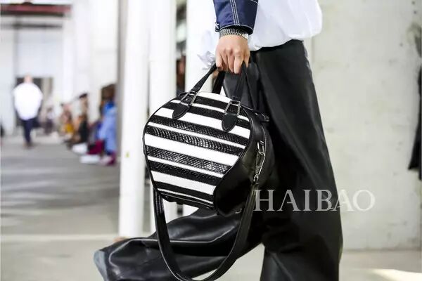 % y+ W0 U9 c% k厌倦了平淡无奇的纯色包包?黑白条纹或是彩色条纹包包或许是个不错的选择。