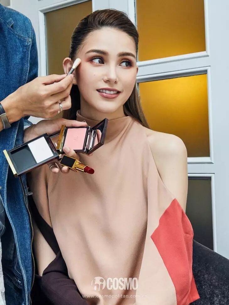 7 }. J9 h% T+ l, q' e首先是深受国人喜爱的TOM FORD,唇膏、眼影、修容几乎样样都是断货王。这次昆凌就是去看TOM FORD大秀,暖红色系的妆容非常适合秋冬学起来。