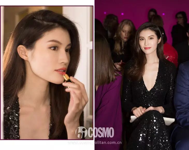 6 @& x( @; F# A1 }& `超模何穗气质优雅大气,她的唇膏色号是09 TRUE CORAL,一直是热门色。