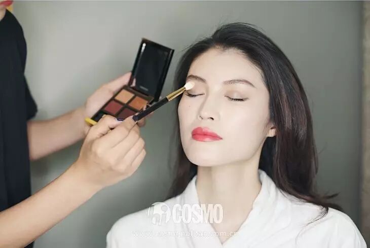 1 c6 u4 V& z: s: M! J5 e最后我们通过后台照学几个化妆、补妆的技巧。