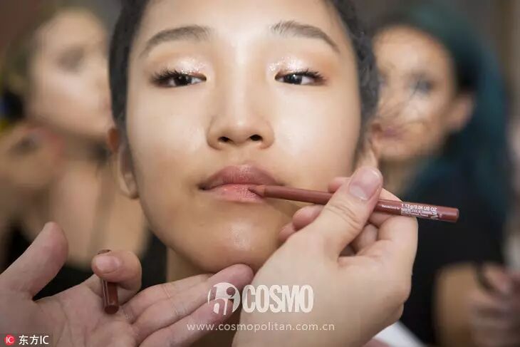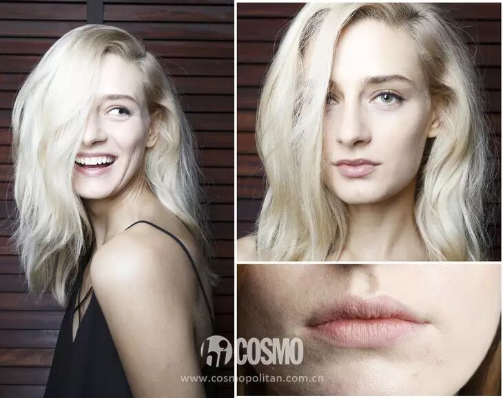 : O% m/ u/ a* W, i& d在唇边没有色彩,但也不同于咬唇妆的画法,用同色的唇线笔勾勒边缘,并用棉棒晕染自然,这种唇妆能让你美得很自然。