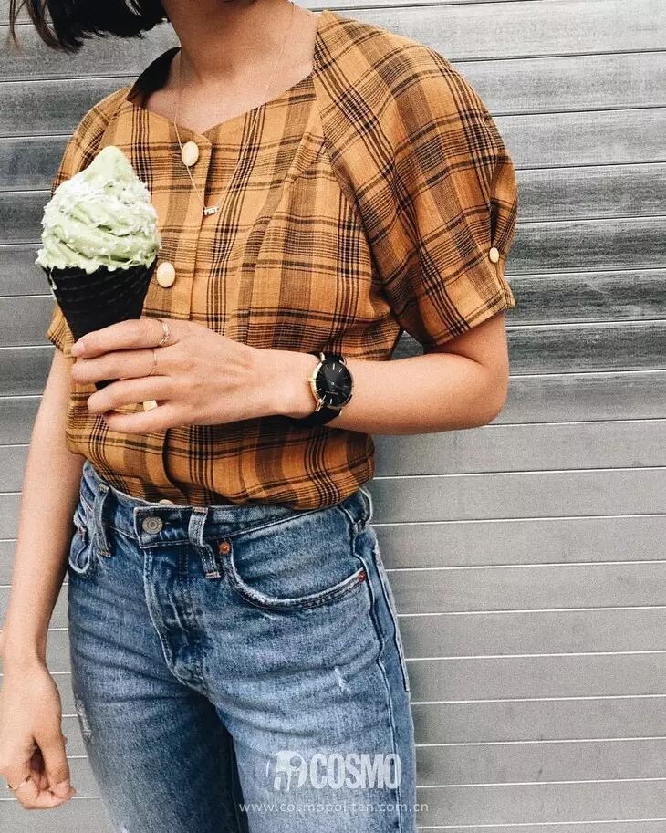 ' v4 D+ V7 `2 S$ L* Y4 p% H大家最熟悉的肯定是苏格兰格纹,纹路变化多端,可繁可简,看似普通却因人而异。苏格兰格纹应用很广,各类服装都可以看到它的身影。最经典百搭的当属衬衫在这一季,变化出更多创新款式和不同穿法。完全摆脱土气,展现出全新的时髦风格。