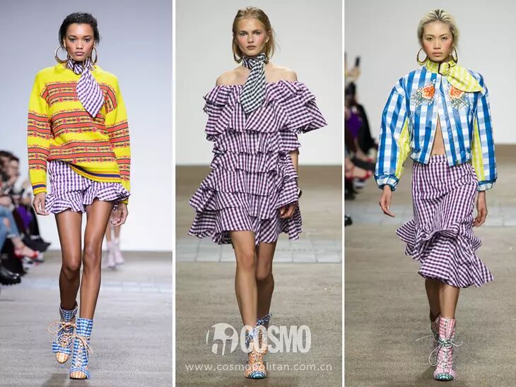 / v8 j$ d) W4 yHouse of Holland选择了俏皮的维希格纹。大面积高饱和度色彩和浪漫荷叶元素与格纹的结合,带来无限的少女气息。