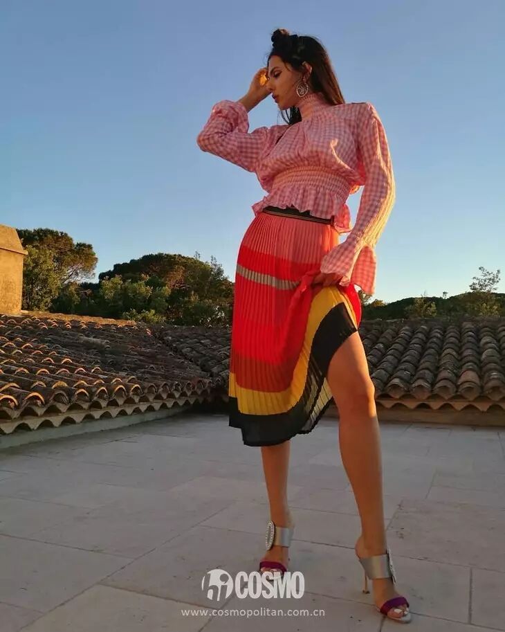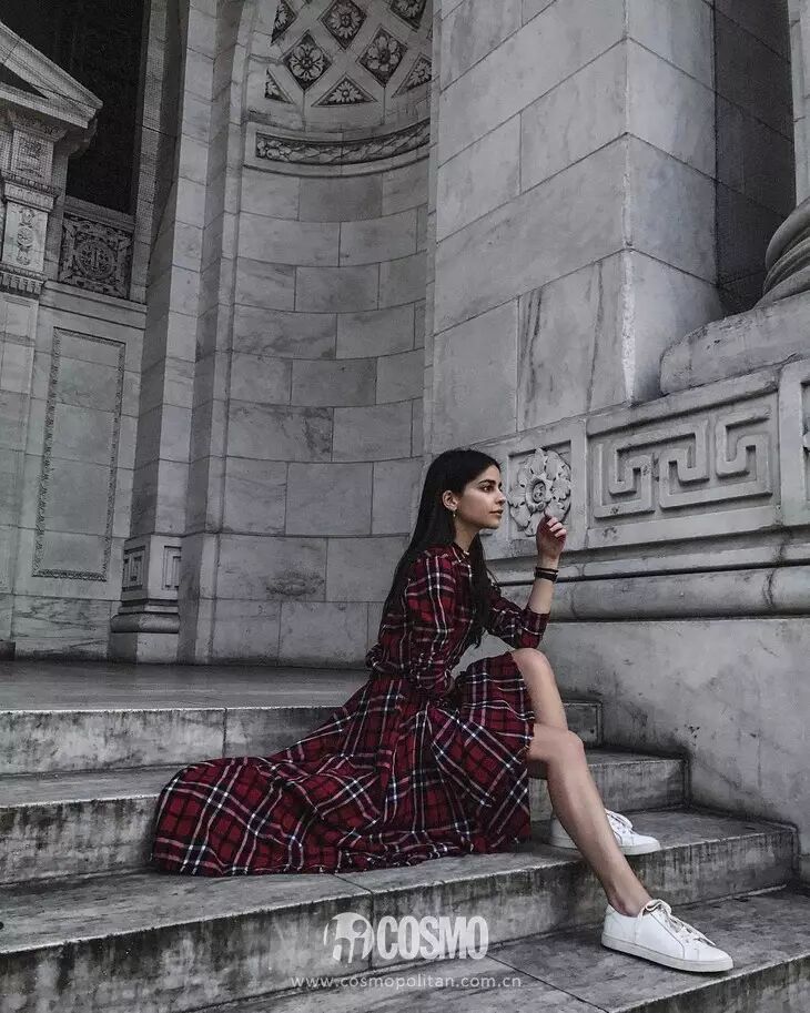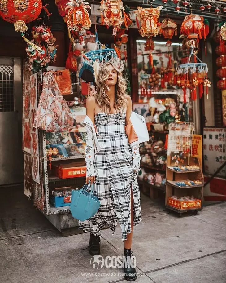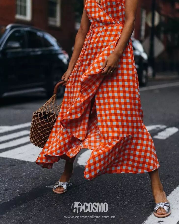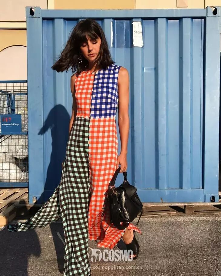 小格纹连衣裙有非常密集的视觉感,但是会让你显得很精致。