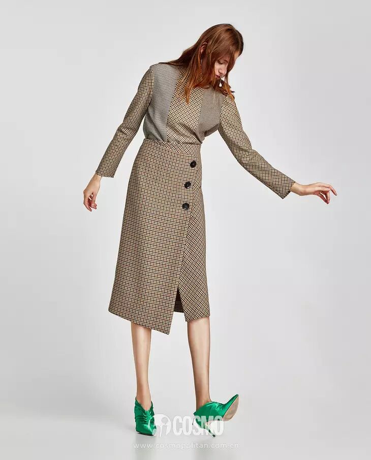 ZARA格纹上衣 参考价399元 格纹半裙 参考价399元 在官网实体店可以买到