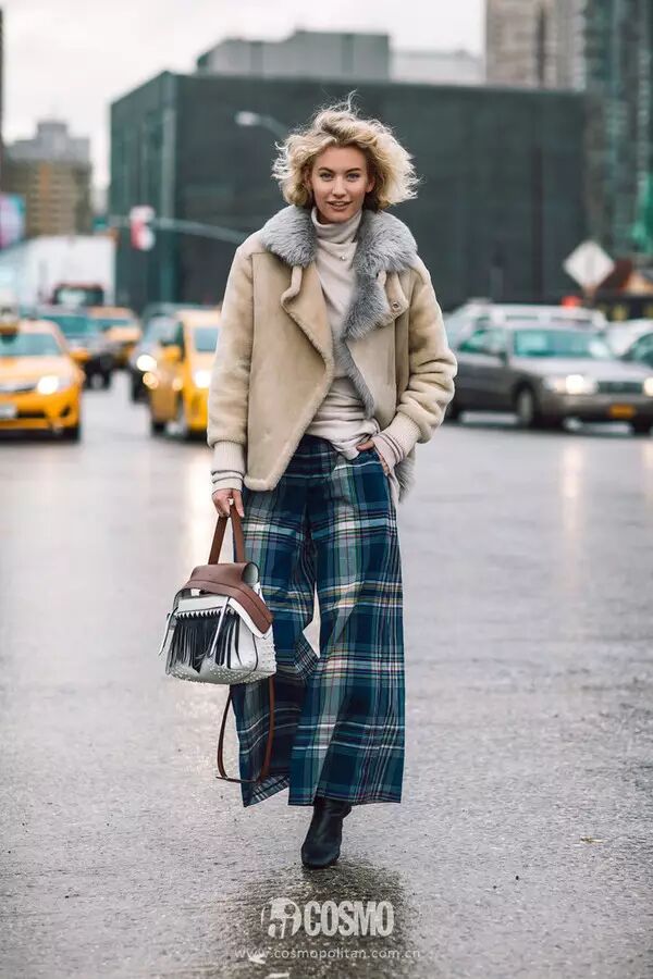 格纹裤装一直是英伦复古范的代表单品之一,无论是什么裤型都能展现出女性优雅、率性的气质。简单交错的图案轻松营造出职业感,是职业女性展现大气干练风范的好帮手。