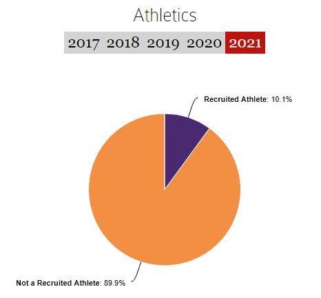 + y5 Y( ~! L6 G0 V! K f; @8 ?值得注意的是,服务校队的运动员在新生中占到10.1%。 ! N4 f+ a. b2 ~" {0 m" r% d5 M