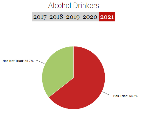 美国法律规定,任何未满21周岁的人不得以任何方式任何理由饮酒。但在调查中,64.3%的新生都曾经“偷偷”喝过酒。 * U+ W: e$ [4 X& _