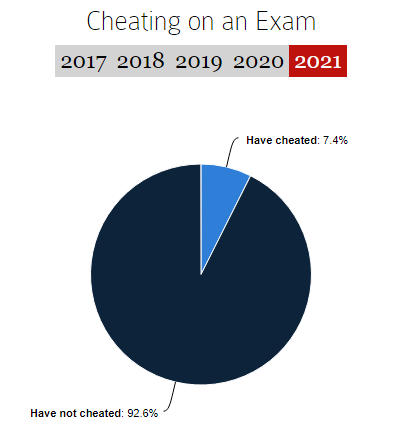 哈佛的调查告诉我们,原来好学生也有蒙混过关的时候。7.4%的新生坦诚自己曾经在论文或考试中作过弊。 & V1 Y k5 R$ Y0 P' }8 A% J