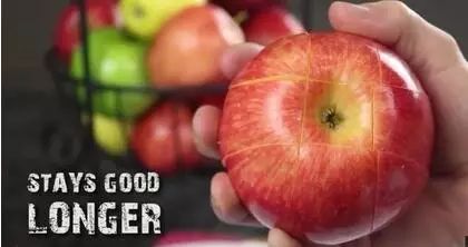 8小时后,喷了柠檬汁的苹果肉看起来更新鲜。另外,这个切苹果的方法比传统方法快4倍。