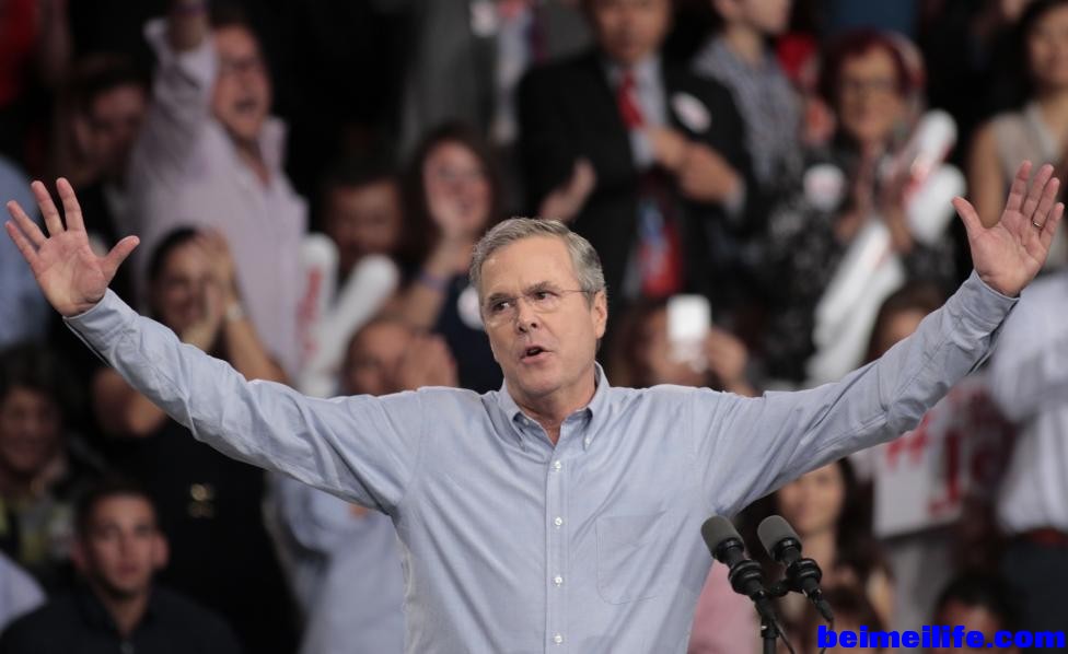 共和党候选人、前佛罗里达州州长杰布·布什,是美国前总统老布什的次子、小布什的弟弟,在竞选之前放弃百万年薪辞去他在公司和非营利组织董事会的职务6 J% N8 t- \" ]! @