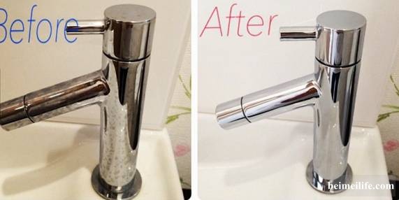 ' _# d* K: D3 R$ `生活中的“硬水”含有大量的钙离子,随着时间的推移,它们会堆积成团,特别是浴室的莲蓬头,用时间长了出水量越来越小。此时你只需用塑料袋装上半包白醋。然后将装有白醋的塑料袋整个套在莲蓬头上用皮筋绑紧。一个晚上就可以讲莲蓬头里面的碳酸钙化解掉。嫌麻烦的直接把莲蓬头取下泡醋里过一个小时,效果也很棒!! _4 G' |7 i$ l+ \/ p5 X9 c" O! n% ?