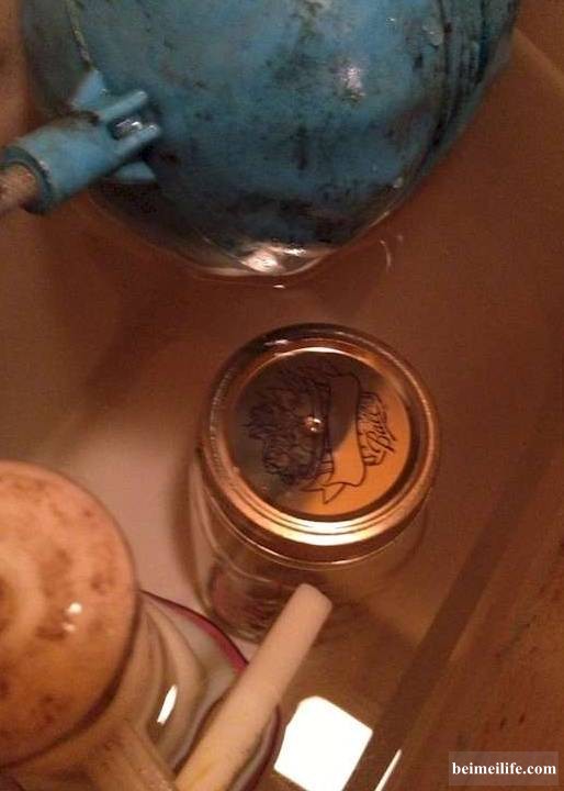 醋可以帮助你,让你的厕所变得干净无比。将玻璃罐用醋装满,之后在盖子上打几个孔,最后倒放在你的马桶水箱中。这样每次你冲水的时候,醋就会跟着水流一起流出一些些,此方法还具有除臭功能。0 o9 H' u; S4 [) \( o