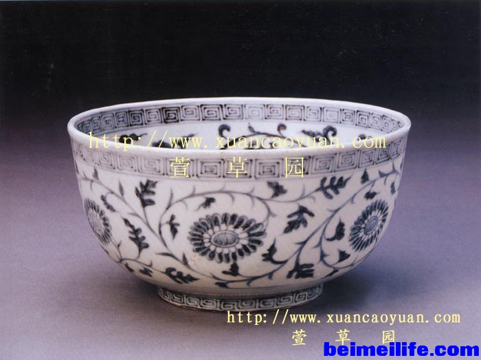 图8:永乐青花缠枝花纹碗。北京故宫藏品。属于中、西亚纹饰交融结合的纹饰,比较典型的“永乐模式”。