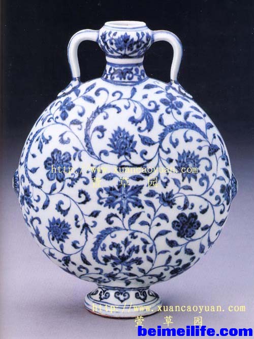 图6:带有浓郁色彩的伊斯兰风格缠枝纹扁瓶。北京故宫藏品。属于比较典型的“永乐模式”。