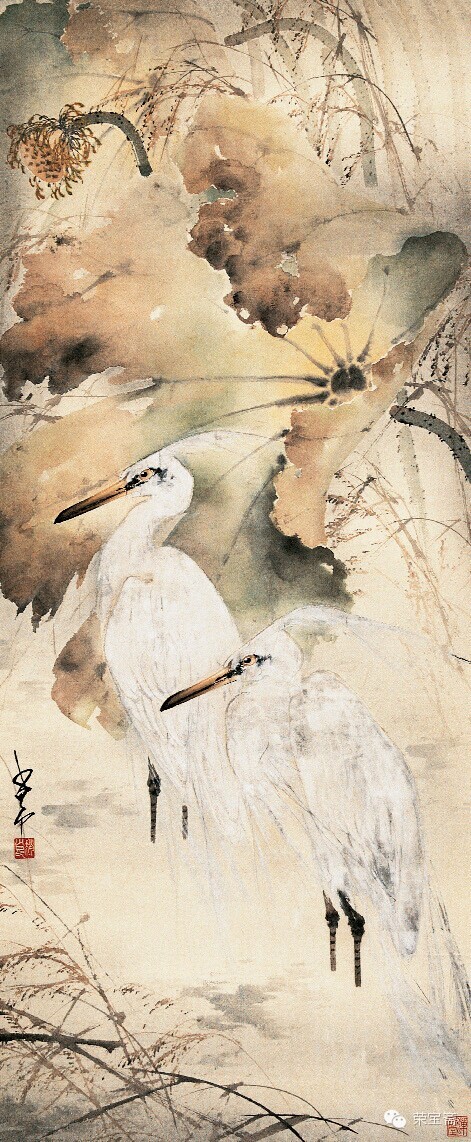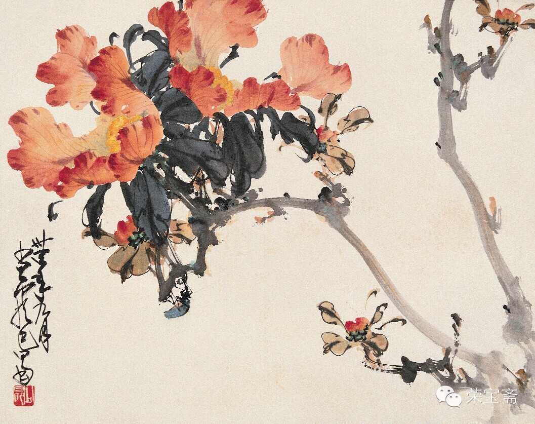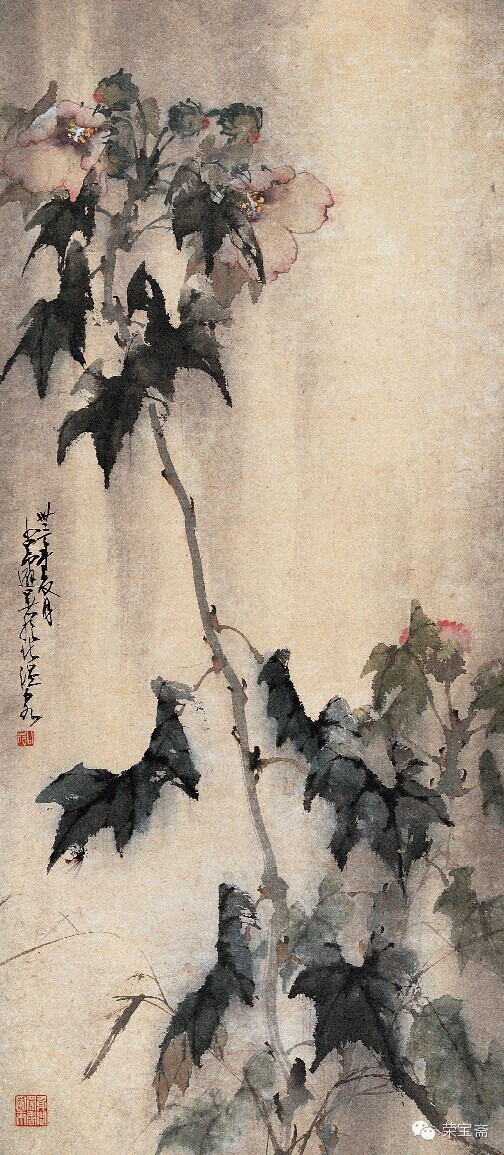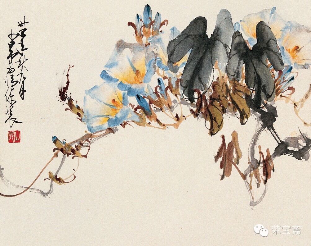 [url=]荣宝斋[/url] 鸣春图 纸本设色 纵二九·四厘米 横三七·六厘米 题识:少昂。 钤印:赵 赵少昂 赵少昂(一九零五—一九九八)初名垣,字叔仪。广东番禺(今广州)人。十五岁入高奇峰画馆学画。一九二五年在广州创办岭南制版所,后在其所内附设岭南艺苑。历任佛山市立美术学校教员、广州市立美术学校中国画系主任和中央大学、重庆国立艺专、广州大学美术科教授。一九四八年定居香港。先后于日本、新加坡、马来西亚、瑞士、英国、法国、意大利等地举办画展。一九七七年受聘为台北中华学士院博士。工画花鸟走兽,兼长山水。在继承传统基础上,吸收日本和西洋画技法。 荷花蜻蜓图 纸本设色 纵一零七厘米 横五二·八厘米 创作年代:一九四二年 题识:妆凝朝日丽,香逐晚风多。卅一年冬寒,赵少昂写荷花,杨善深补蜻蜓并题。 惠年吾兄雅爱,卅三年初秋,善深再志。 钤印:善深 少昂 按:与杨善深合作。 荷塘鹭鸶图 纸本设色 纵一二四·五厘米 横五一厘米 题识:少昂。 钤印:赵少昂 蝉焉室 棕榈秋蝉图 纸本水墨 纵六九·五厘米 横一○三厘米 创作年代:一九四四年 题识:翠叶不禁秋,蝉声起幽咽,弗肯逐金貂,饮露聊自洁。卅三年五月,少昂于北温泉龙岩。 东海吾兄惠存指正,卅四年八月少昂将返岭南。 钤印:少昂 少昂 秋草蛱蝶图 纸本设色 纵三零厘米 横三七·五厘米 题识:宝娟女弟属,少昂画。 钤印:少昂 芙蓉花图 纸本设色 纵一零三厘米 横四五厘米 创作年代:一九四四年 题识:卅三年夏月,少昂避暑于北温泉。 钤印:少昂 身从众香国来 花卉四屏之一 纸本设色 纵二九厘米 横三六·五厘米 创作年代:一九四五年 题识:冷露无声叶更苍,半湖秋水意微茫。纵然一枕黄粱熟,扑面薰风梦亦香。少昂过桂湖。 钤印:少昂 花卉四屏之二 纸本设色 纵二九厘米 横三六·五厘米 创作年代:一九四五年 题识:卅四年九月,少昂客蜀。 钤印:少昂 花卉四屏之三 纸本设色 纵二九厘米 横三六·五厘米 创作年代:一九四五年 题识:卅四年九月,少昂于巴蜀。 钤印:少昂 花卉四屏之四 纸本设色 纵二九厘米 横三六·五厘米 创作年代:一九四五年 题识:卅四年秋九月,少昂南归倚装。 钤印:少昂 (摘自《荣宝斋珍藏》) |