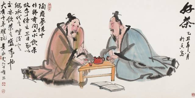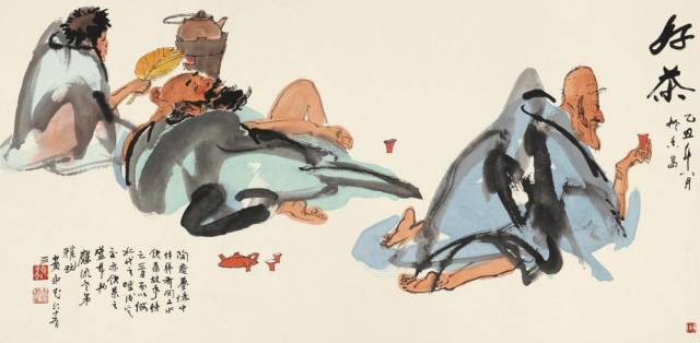 唐慧寂诗意图 款识:滔滔不持戒,兀兀不坐禅。酽茶三两碗,意在镢头边。唐慧寂诗。黄永玉于万荷堂。 越饮越清醒 对于酒,黄老更是说自己是个“不喝酒的酒徒”,他认为“酒是人类第二大快乐,它与人类共存亡,只要一天有人便一天有酒 ”,是个实打实的“拥酒派”,他自己爱酒却不常饮酒,因为他酒量实在不高,但他欣赏酒鬼们的那种自得其乐的状态。关于酒,黄老也是妙语连珠: 黄永玉 饮酒图 酒是一种特殊的生活方式。它无孔不入。忧愁要它,欢乐也要它;孤独要它,群体也要它;天气好了要它,风霜雨雪也要它;爱情要它,失恋也要它;诞生要它,死亡也要它;恶人要它,善人也要它;当官的要它,百姓更离不开它;有文化的要它,大老粗也爱它。 ——黄永玉 黄永玉 沽酒图 喝不喝酒是人和野兽最大的区别……我和大多数人都不喝酒,我们欣赏喝酒,与喝酒的人为友,我们这帮人占全世界人口的百分之七十二点四,是不喝酒的拥酒派,算不得是野兽派。 ——黄永玉 1993年作 不可不醉 不可太醉 酒,我很欣赏,可惜一口就醉。在酒朋友旁边醺得面红耳赤倒是常有的事。但是,我能体会得到“酒”是很妙的东西。 ——黄永玉 乙丑(1985年)作 独乐 人生如酒、人生似茶,黄永玉的茶酒画蕴含的那份真性情,的确叫人印象深刻,很多人都喜欢黄老的绘画、文字、生活中透露出的那份幽默与乐观,而他的这种大风趣与天真,正是人生阅历与沧桑的积累,是一种智慧与旷达的精神释放! 1986年作 乐在其中 俗话说,饮酒可成仙,品茶可成道。酒,热烈、香醇,是“精神之液,灵魂之饮”;茶,自然、恬淡,是“最温柔蕴藉、最富诗意的饮品”。喝酒、饮茶是文人挚爱之雅事,在黄永玉作品中,我们也常常能看到很多茶、酒的影子,每每品味他的这些逸趣横生的茶酒画,就如喝茶品酒一般,大俗大雅,大彻大悟! 丙子(1996)年作 读书品茶 [size=1em]饮茶是人生一大雅事,画家黄永玉也喜欢喝茶,尤爱普洱。茶有禅意,茶禅一味,在茶人眼里,月有情、山有情、风有情、云有情,对茶的痴迷、对茶人的描绘,反映了这位已步入耋耄之年的老人,恬静淡雅的文人情趣。 黄永玉 得茶 [size=1em]在黄永玉的茶画中,我们总能看到一份偷着乐的情趣,画中人往往因得茶这件小到不能再小的事情而变得喜色难掩,也就是这份微不足道的趣味,叫人看了画,也不禁愉悦起来。人生本就简单,若你把大富大贵、飞黄腾达作为乐趣,那自然乏味,若你把所有的小事都当成乐趣,那自然其乐融融,轻松自在不少。这便是黄永玉画中所谓的“欢喜有理”! 欢喜有理 [size=1em]细细想来,喝茶之事也不就和画里一般,是件并不高雅,反而有些俗,但能叫人乐在其中的人生小事儿!当你煮茶、品茶不再为茶叶、茶杯、壶、水、温度诸如此类的讲究而尽心思琢磨时,仅凭心中的那份纯粹的闲适淡雅,一片小小的树叶,也足以叫人自得其乐。 黄永玉 好壶 一品佳茗,整个心沉浸在这抹大自然的芳香,所带来的清朗洁净之中,真是“偷得浮生闲半日,静坐庭前细品茗。如尘俗事眼前过,唯留清风绕衣裙”呐! 黄永玉 1988年作 好茶 黄永玉 1924 煮茶图 黄永玉 待茶图 黄永玉 好茶 录文:山里人饮茶不讲究用具随意烧出就是上好的茶,城里人饮茶什么都要讲究,其实什么也不懂。 黄永玉 好茶图 品茶 |