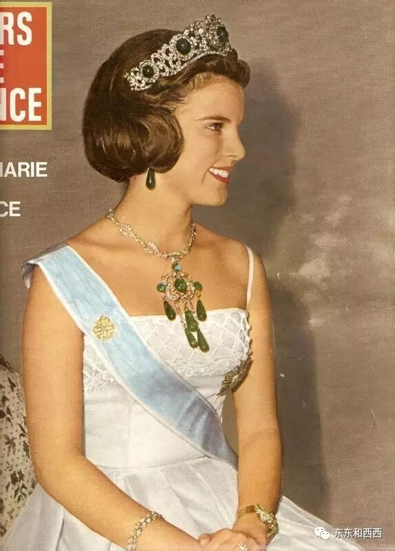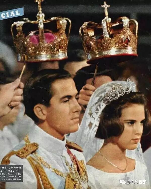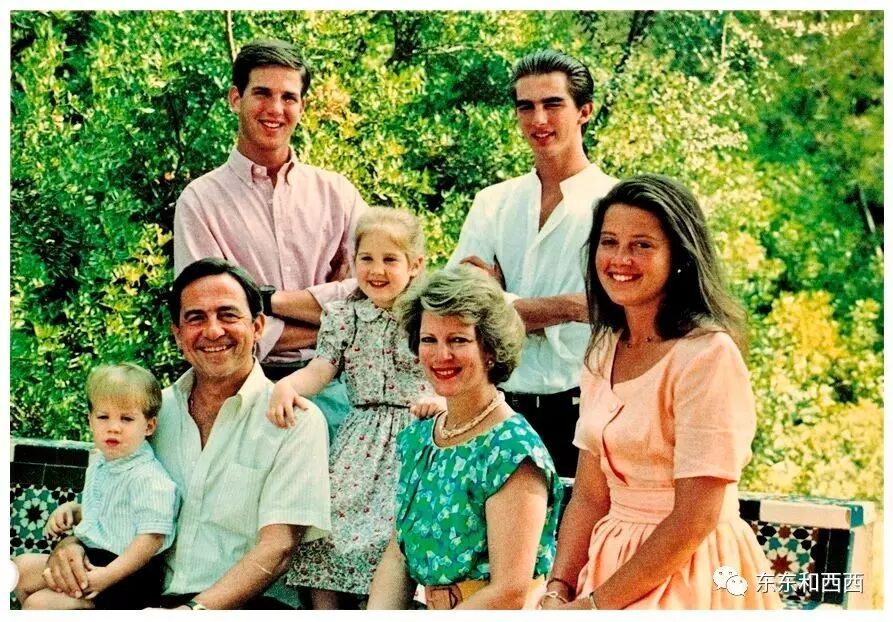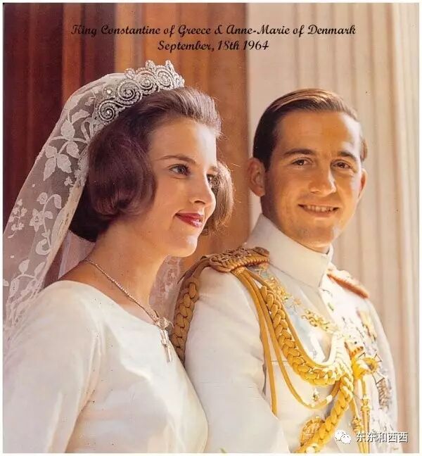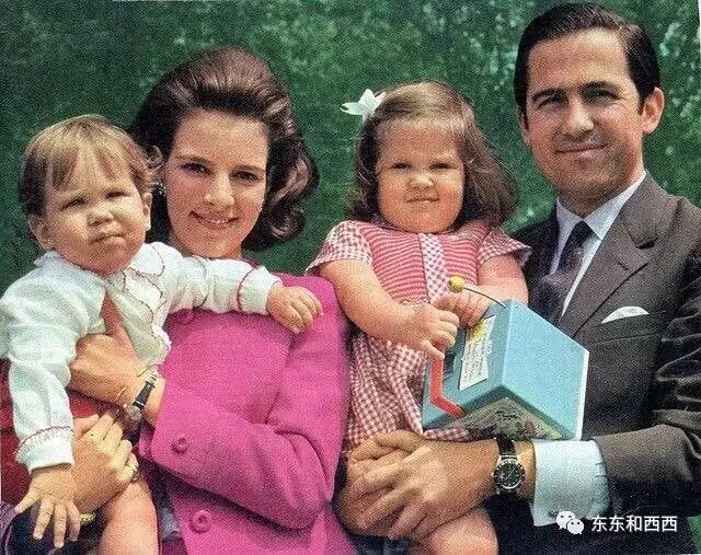 周五上王室专辑咯~ 上期八了生活幸福的丹麦二公主,东东和西西的读者妹子们指定本期由三公主出场,这就来了。 三公主是当时最美欧洲公主,用某剧台词来说:美成这样注定要历劫吧。她果然碰到人生磨难,但她够坚强,照样把自己的日子过成了浪漫童话~ Princess Anne-Marie安妮玛丽出生于1946年8月26日,是丹麦老国王和王后英格丽德最小的女儿,王后早年是大美人,生的三个女儿颜值都很高。 三公主安妮玛丽从小是卷毛娃娃,长得最像妈,脸型略长↓↓ 她小时候进哥本哈根私立学校N.Zahle,中学读Chatelard女子学校,这是一家在瑞士小镇的英语寄宿学校,所有科目全学完以后,还得专门到Le Mesnil学习一年社交礼仪。 当时丹麦还很保守,规定没有兄弟才由女孩即位。她家三姐妹,大姐是女王储,安妮玛丽是第三顺位继承人。 长成姐妹花,她成了最出名的公主。少女时期还没进社交场,这张她罕见出席王室成员葬礼的照片就被单独登报↓↓ 这是王室官方照,两个姐姐都戴王冠佩绶带,她尚未成年,头上戴两朵钻石花,有点类似电影茜茜公主头上的小箭和星星发饰↓↓ 这个美少女盯的人当然多,连丹麦王室都没想到,她只有13岁就碰到了未来夫君。 当时19岁的希腊王储跟着父王到丹麦访问,第一次遇见安妮玛丽,眼里再也没了别人。有传闻说,这次安排本来让王储向二公主求婚,但男方看上了小妹,而且态度相当直接。 那么小的女儿就有求婚者,丹麦老国王立马懵圈,顺手关门把王子关进厕所,自己找王后去商量了。 这段传闻不知真假,但王储对13岁的三公主绝对一见钟情。 这位性格坦率的希腊王储叫康斯坦丁,血统相当牛,是老国王和王后生三姐弟里的独子,注定要当国王。加上他家极会攀亲事,他跟欧洲各王室都有血缘关系。 康斯坦丁与父王 英国查尔斯王储是康斯坦丁表弟;他姐姐索菲亚,嫁到西班牙当王后;他本人呢,跟安妮玛丽是三代远亲,都是太太祖父丹麦前国王,太太外祖母英国维多利亚女王的后代(欧洲王室一家亲,亲到我不懂我在说什么)。 总之王子和公主既是表亲,又是堂亲,现在他想亲上加亲。 康斯坦丁背景雄厚,自己也相当不错。高大帅气,还是运动健将,擅长游泳、空手道和帆船。在奥运会上当旗手,一参加比赛就拿下希腊50年第一块帆船金牌。 这么man的男人当然荷尔蒙爆棚,自从碰到丹麦三公主,就开展拿下美少女之路。安妮玛丽15岁时,他家又去丹麦访问。才第二次见面,他和父母正式提出要娶小公主。 未来女婿条件好又盯得紧,丹麦老国王早早同意两人婚事,但安妮玛丽尚未成年,说好等到她满18岁。 王子一边等待公主长大,一边想办法见她。隔年是康斯坦丁姐姐索菲亚与西班牙国王大婚,当时只在王室之间通婚,连伴娘团请的也是清一色公主。 安妮玛丽到婚礼上当伴娘,这是她和康斯坦丁第三次相见。 在希腊王室举办的百年庆典上,两人又见面。男方这么一次次主动深情,公主也早就认定了他。 终于等到安妮玛丽长大,但王子还没大婚,希腊老国王就重病去世了,康斯坦丁只有24岁就走上大位当国王。 1964年9月,就在公主年满18岁后两周,两人在雅典大教堂举行婚礼,安妮玛丽是三姐妹中第一个结婚的,成了欧洲最年轻王后↓↓ 抱得美人归,康斯坦丁开心得不行,特喜欢挽着老婆手↓↓ 两人感情极好,国王出访暂时分开也恋恋不舍;连笑起来侧脸都相似↓↓ 美貌王后很吸引媒体,这套绿宝石王冠和项链,是安妮玛丽最喜欢的珠宝,戴了一辈子↓↓ 她很快生了长女,还负责慈善工作,成立王后基金援助农村建设。 然而这么美好的一切,只过了3年就化为泡影。 希腊本来就是难搞的国家,新国王运气还不好,父王太早去世,他年纪轻轻很难掌控一个矛盾深重的王国。王后更小,当时就一个单纯小姑娘。 夫妻俩年轻有为也有责任心,然而没有政治经验。国王只在宝座上坐了3年,就遇上了生命中最糟糕的时刻。 那晚,大批坦克包围王宫,一群军人冲进去,逮捕国王和大臣。这场军方政变规模很大,有8000人被捕。国王对抗了几个月,想组织部队抗衡,只能是鸡蛋碰石头。 再这样下去就得打内战,影响人民生活,康斯坦丁只好带全家逃到罗马,住在希腊使馆。 从这一天起,希腊的王朝算是废了,他从成天听电话忙碌的国王,沦落成一个无人理会的人。 安妮玛丽只当了三年王后就开始颠沛流离,在慌张流亡异乡的路上,她还流产了一个孩子,从精神和身体上都被打击得太惨。 接下去更惨,希腊使馆不是他家的了,只能住两个月,他们得想好退路。 康斯坦丁娶安妮玛丽一点没有政治利益,丹麦只是小国,在他们四处流亡的时刻,丹麦甚至不敢收留。 安妮玛丽与母亲丹麦王后 全家人搬出使馆,在罗马乡下的一套房子里借住了5年。 又去投靠英国亲戚,先住萨里郡,后来又辗转到伦敦郊区。没有稳定住所,没有安宁生活。 安妮玛丽请英国女王出席女儿受洗 希腊成立共和国,康斯坦丁家族表示不想再争,只想住回自己家,吹吹希腊海风都是好的。 但政府做得很绝,把前国王三处房产都没收,甚至不让他们回家看看。全家连希腊公民身份都没有,只能拿丹麦护照,回国次数少得可怜。有一次回去旅行,被炮艇和驱逐舰轰出希腊海域,让前国王很伤心。 好在,在无数伤心事的背后,一家人还在一起。安妮玛丽一直支持老公,从来没有一句叹息后悔的话,感情还是美好。 一共生了5个孩子↓↓ 子子孙孙过得越来越好:儿子娶