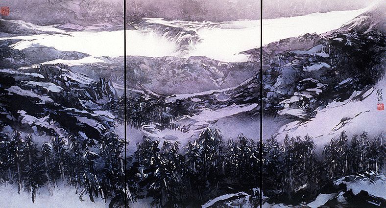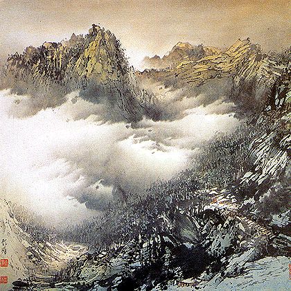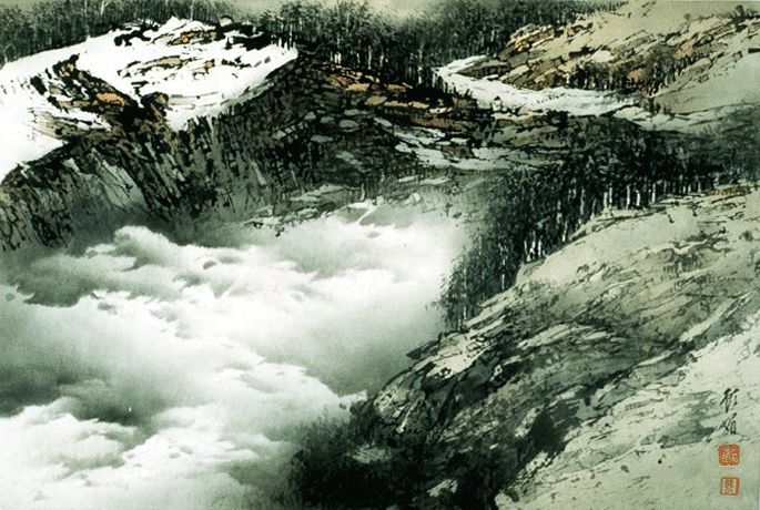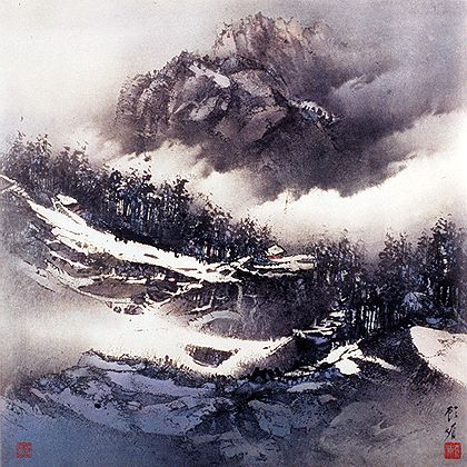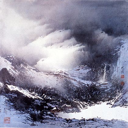 年轻时的顾媚 “忘不了,忘不了,忘不了你的错,忘不了你的好......”磁性的歌声、幽怨的曲调、如泣如诉。听着这首经典的怀旧老歌《不了情》,不知你有没有回忆起这位叫顾媚的歌手? 此“顾媚”非彼“顾媚”(明末名妓、秦淮八艳之一的顾横波亦名顾媚),她是香港上世纪五六十年代著名歌手、演员,曾加盟邵氏兄弟(香港),有“小云雀”之称,亦为作曲家顾嘉辉的亲姐姐。“不了情”即为其成名歌曲之一。 1970年代起,顾媚专注于画坛,成为中国画画家。著有《从破晓到黄昏——顾媚回忆录》。 壬子(1972年)作 山寺观瀑 钤印:大千唯印大年,嘉 题识:六十一年壬子十月,嘉以新作远寄环荜庵索为补笔,因缀远山山寺。爰翁。 她的画作,当年倍受张大千、赵无极等画坛大师的赞赏。据闻,赵无极曾提出过拿自己的画作跟顾媚交换;张大千也曾在顾媚的五幅画作中题字并补景,更以“歌似韩娥云遏止,画如米老泼淋漓”这样的诗句,对这位才艺双修的画坛女子大加赞赏。对于两位画坛大师的厚爱,顾媚只淡淡地说道:“这些都是他们的一种客气和鼓励而已。” 早期生涯 顾媚,原名顾嘉弥,1929年出生于中国广州。父亲顾淡明曾任职报界,精于绘画。她早年曾接受美术教育,后因战乱不得不放弃学业。中学未念完,便开始在溜冰场工作,当时其唯一的乐趣就是在场内听到周璇、李香兰与姚莉的名曲。在此之前她已痴迷时代曲,其干爹——乐师孙宁给予其指点。她学会了看简谱,并不顾母亲的反对,开始在干爹任职的“德奥瑞娱乐场”当歌手。 歌手与演员时期 1951年,顾嘉弥正式投身歌坛。她的身为乐师的首位男朋友为她改艺名为“顾薇”,后却被误为“顾媚”,并一直沿用至今。此后,她还曾在新加坡、台湾及泰国登台。1961年,加盟邵氏,在邵氏工作初期,其主要任务是幕后代唱。1962年,在电影《不了情》中,顾媚为女主演林黛配唱三首插曲即《不了情》、《梦》(其弟顾嘉辉作)与《山歌》。其中,《不了情》也是她的成名曲。 1965年,她出演电影《小云雀》获得成功,奠定了她歌演双栖的地位。1998年,她曾在其弟顾嘉辉与黄沾合办的辉黄演唱会上演唱,其弟顾嘉辉为她伴奏。 水墨画家时期 1963年起,顾媚随赵少昂(岭南画派代表画家)习画;1969年起,在台湾随胡念祖(黄君壁弟子,北宗山水画家)习画;1974年起,随吕寿琨(香港山水画代表画家)学习现代水墨画,从此开始建立自己独特的画风。 2003年作 雪山冰川 1976~2009年间,顾媚在香港、台湾、澳大利亚、新加坡、马来西亚、温哥华、日本等多地举办多个画展。其作品被香港艺术馆,香港体育馆,加拿大驻香港领事馆,美国犹他州立大学,香港美国银行,香港澳大利亚联邦银行,万国宝通银行,香港和记大厦等机构收藏。 洛玑山春晓 顾媚的画作多以写云雾为主,尤爱绘意念中之山水,用似古碑般重叠的线纹及层层渲染,开放而蒙眬氤氲的缥缈空间,使观者融入柔美的画境。既吸收了赵少昂岭南画派的光影特色,又吸取了胡念祖写意山水的朦胧意象,还学习了吕寿琨革新水墨的哲理思想,加以融会贯通后另辟蹊径,不仅体现出了中国传统山水画求自然、呈心性的意境,又和西方绘画的光影效果有机结合,形成了独具特色的趣味。 黄山天下奇 她的绘画还受到中国唐代诗人王维的影响,以致于在很多作品中也是以王维的诗落款。 空山新雨后 天气晚来秋 明月松间照 清泉石上流 竹喧归浣女 莲动下渔舟 随意春芳歇 王孙自可留 自从70年代起专注于画坛后,顾媚还曾任教于香港中文大学及香港大学校外进修部水墨画课程,以及美国犹他州立大学、美国盐湖城犹他大学的中国水墨画工作坊。及后移居加拿大,更终日与翰墨丹青为伴,保持着一种恬淡的心境和安宁的生活。 晚年的顾媚,虽已不再是荧幕前的歌手演员,但薄施脂粉,衣着素雅的她,举手投足之间,依然散发着一种令人折服的优雅和魅力,同时更多了一份“宠辱不惊,看庭前花开花落;去留无意,望天上云卷云舒”的从容和淡然。 春晓 乐在云中 ——顾媚 ( 这篇文章是顾媚在「香港大学美术博物馆」为她出版的一本画集「纤云巧染」顾媚绘画的自序。从这位红歌星到岭南派画家的一点自述中,我们可以看到一个非凡的艺术家背后的小故事,希望有人能够从中体会一点点艺术家的生活片段及作画历程。) 三十年前的香港画坛,一片朝气蓬勃的新景象,年轻的艺术家们都在追寻自己的理想,画会纷纷成立,热诚的艺术家们兢相表现“创新”,其中的领导者首推吕寿琨先生。 深谷云映 当时中国大陆还未正式开放,出生在中国的我,连自己的家乡都未见过,更遑论气势磅礡的名山大川。对于喜爱绘画山水的我,无法放开怀抱。吕老师教导我们自己创立一种皴法来表达自己的作品,同时给我们灌输一些现代艺术的知识,鼓励我们自由发挥。当我正很投入的时候,老师不幸去世。我在此时加入了老师有份创办的一画会。顾名思义,“一画会”的“一画”(亦称一划),是明末四画僧之一的《石涛画语录》的第一章第一句:“法于何立,立于一画”。 村居 当时我还未完全领略其中的含义,只知道“一画为万象之根”,一划可以表现无穷的万象。于是我大胆地闭门造车,捕捉自己的胸中楼阁,我选择了云雾作题材,开始乱涂鸦,随著飘忽不定的云雾,遨游心中的四海,务求画面能表现出多面化,自己就在云雾里浮沉了几十年。 1999年作 洛