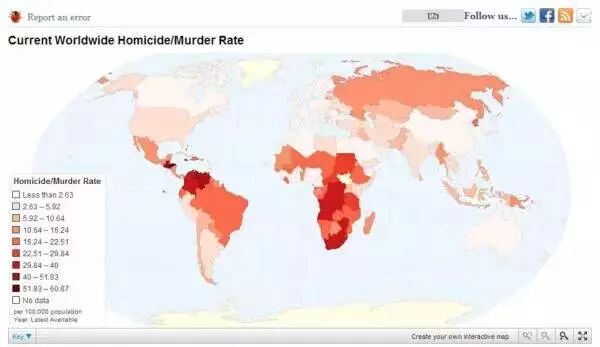 被动安全威胁 (即由他人或环境引起)-- 和个体意愿无关,是被环境或其他个体恶意侵袭。 这两点结合起来,就出现了常见的四种威胁类型: 个人主动威胁:穿着暴露,或者露财等导致在公共区域内强奸,抢劫,偷窃 个人被动威胁:家暴,入室抢劫 群体主动威胁:较少,例如去阿富汗传教(以前是韩国人,现在是中国人)/主动参与巴尔地摩暴动。。。 群体被动威胁:较多,恐袭,校园射击,劫机 而避免安全威胁最有效的方式,就是提高自身的安全意识。 鉴于主动安全威胁和被动安全威胁的方式不同,我们这里分开讨论。 先说一下主动安全威胁。 主动安全威胁常出现于公共领域,并在绝大多数情况是可以通过自身行为避免的。主动安全威胁往往符合记叙文三定理: (时间,地点,人物)。 即在错误的时间,到错误的地方,遇到了错误的人(动物,自然)。 而如果去掉任何一条主动安全威胁就很难发生(如果三条都能避免,则可以彻底避免悲剧发生)。在绝大多数主动安全威胁案例下,缺乏安全意识,放松警惕是悲剧的最大根源所在。 近些年和华人留学生今年来有关的恶性案例: 纪欣然案 (2014 南加大 走路被袭击,近日刚被宣判) 吕令子案 (波士顿 恐怖袭击) 仲兴案 (新泽西纽瓦克 抢劫杀人) 姚宇案(法拉盛 强奸杀人) 瞿铭 吴颖案 (南加大,开车被袭击) 这些案件的明显特点,除吕令子是被恐怖袭击杀害,一定意义上属于不可抗力外,其他案子均符合 时间(深夜-黎明) 地点(相对乱差地区)人物(凶杀)三要素。 这里我个人很同意知乎网友Friday PP这个观点: “无论是在美国的华人,还是没去过美国的人,赶快停止各种或明或暗的宣扬美国多好的言论吧,你们这么做造成了多少刚来美国的中国人的不幸。在这件事情上,所有鼓吹过美国人多热情善良的人都多多少少的有些责任,你们自己在美国时间久了,早就懂得什么叫老游击队员保命要靠不作死了,却从来不提,反倒是在各种场合多多少少的宣扬着美国人的热情,善良诚信。然而多少初到美国的同胞就是相信了你们的宣传,留下了那样的印象,轻信了美国人,失去了警惕心。然而美国治安就是不好,这是无论怎么宣传也改变不了的事实。在这种环境里,失去了警惕心还轻信了别人误以为安全,是多么可怕的事情。敢问这个姑娘哪怕是在北京,或是她的家乡,会这么随随便便上陌生人的车吗?然而为何到了一个陌生的国家就突然装变了?总不可能是智商突然掉线了吧。与其出了事情各种着急不如从根源上不要再一面倒的只说美国好的一面而不提其可怕的一面了。” 就在昨天,我自己妈妈还在转发类似的鸡汤文:从一场车祸看国民素质不同的文章。 这种无脑吹(实际上仅仅宣传美加相对富裕的地方来对比中国的广泛区域,写这种文章的人往往住在那种“好区”,他们不会,也没能力去差区--而留学生的选择则比他们少的多)创造了一个美国如何安全的错误印象。 实际上美国很多地区的安全下限远低于中国。例如Peter Liang案中他案发所在的区就是一个著名的毒品犯罪天堂,就在他被宣判前几周又有袭警事件。 图里可以看到,美国凶杀率比中国同比是高一级的。 正如知乎网友地山朋友评价的: “美国这个国家,民主法治管的着的地方,那就是人类社会的模范。民主法治管不着的地方,就是男盗女娼。美国大学附近四处走走,总能看见姿色不错的年轻妹子的寻人启事,当然绝大部分是白人。更不用提各种party rape,date rape,amber alert等等。所以大家见到一个美国人,不管对方笑起来多像美国队长,在不了解的时候,安全的做法,就是假设他是人类社会的渣子,尤其如果你是女的,对方是男的。中国虽然可能人渣更多,但是中国人渣没有枪,对你也不具有不对称的语言和社会经验优势,每一个美国人渣背后都有大批两党政客的加持,左派说他们只是没有平等的机会,反对警察有针对性的执法,反对警察严厉执法,还要废除死刑,右派则誓死捍卫他们持枪的权利。 顺便说,美国治安不好,是社会的结构性问题,并不是某些人特别坏造成的(虽然某些人确实特别坏,但是结构问题不解决,他们不坏也会换一些别人来做坏人。)。美国警察也不是真的不作为。每年警察在街上直接击毙歹徒就上千人。美国人对这些坑早就了然,所以不会轻易做危险的事情。中国人容易撞在这些陷阱里头,也是刚到美国,不了解环境。比如一个生活在北京的北大硕士,如果要到四线城市去出差,对见到的人,心里应该是充满警惕性的。但是来到美国的四线城市,呼吸了几口香甜的空气,看了几个无比友善白人男女,就觉得人人都是活雷锋了,这种天真的想法,实在是要不得。” 来美很多留学生由于地域不熟,加上为了给家里省钱,经常采取合租比较便宜公寓的方式。 而允许这种合租公寓坐落的,恰恰是犯罪率较高的区域。 (这里就不说坐落在大城市中的美国大型学校常常坐在犯罪相对区域集中的城区,对,我尤其在说你们--Yale和CMU。。。)这给学生增加了额外的危险。 即使像UIUC这种理论上坐落在大农村的学校,附近一些地区的治安水平也是堪忧的。 这里感谢知乎网友Eason 同学推荐的Trulia这是一个二手房、租房信息网站,它有一个最强功能就是看犯罪率地图。找房子先查查附近的案发情况。尤其是性侵和抢劫一类的。 不要为了省几个钱,把命搭进去。 也希望下次有人聊自由的空气的时候,可以顺便讲一下自由世界校园周边