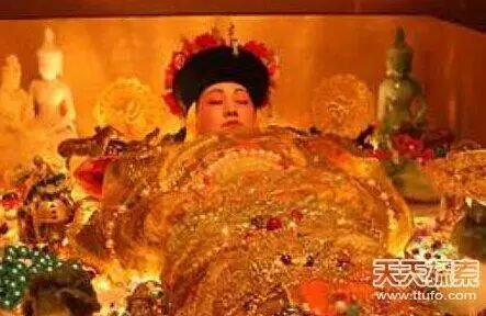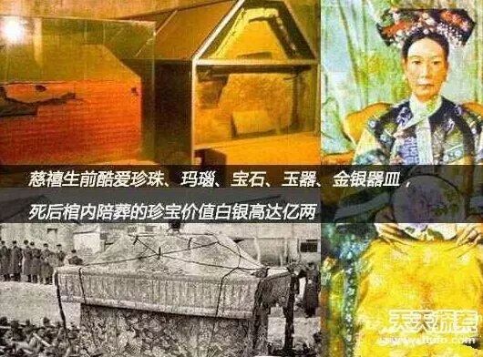 在北京以东125公里的河北省遵化境内地势宽敞,河流环绕,是一块难得的“风水 ”宝地。那里长眠着包括顺治、康熙、乾隆、咸丰和同治等五个大清皇帝在内的161位帝、后、妃及皇子公主们,是中国现存规模最大、体系最完整的帝王、后妃陵墓建筑群。大清王朝家族为什么把寿宫选在这个远离京城的地方呢?据说,这跟顺治皇帝有关。当年喜爱行围打猎的顺治皇帝来到这里,即刻被这一片灵山秀水所震撼,当即传旨“此山王气葱郁可为朕寿宫”。 从此,在生死轮回,死后灵魂不灭的观念的指导下,中国最后的封建王朝统治家族为了能在另一个极乐世界生活得更好,他们利用手中至高无上的权力开始大肆营建超级豪华的陵寝。这种大规模营建寿宫的风气在慈禧太后执掌晚清政局的几十年间表现尤盛。 慈禧棺椁内的珍宝堪称世界之最 慈禧死后有两个鲜为人知的秘密安排:一、收集各种价值连城的宝贝陪葬;二、让光绪陪葬。 一、慈禧太后陵墓里的“秘密”:慈禧陵墓究竟有多豪华? 按照中国历代帝王陵寝的祖制,东太后慈安陵虽然建在定东陵的西边,但它紧挨咸丰帝的定陵,而西太后慈禧陵虽然建在东边,但它却远离咸丰帝的定陵,西太后慈禧的陵址明显低于东太后慈安。 慈禧陵墓究竟有多豪华 另外,两座陵墓建筑规模大体相同,但慈安陵共用白银260万两,而慈禧只用了227万两。两宫太后陵寝位置的安排对于一个处处高人一筹的慈禧来说,自尊心受到了极大的伤害。慈禧历来是一个争强好胜女人,哪能甘居他人之后。光绪七年(公元1881年)慈安暴亡,从此,慈禧大权独揽。 在她60大寿的第二年(公元1895年),正值甲午战后,又逢全国遭遇罕见的灾荒。慈禧不顾国家大量赔款以及农民流离失所、饭殍遍野,居然下令将她的“万年吉地”全部拆毁重建。这个工程持续了十多年,直至慈禧死时才休上。重修后的慈禧陵的主要建筑分为前朝后寝两大部分,前朝是祭祀朝拜的地方,主要由隆恩殿,东西配殿组成。 后寝是安葬西太后慈禧的地宫。重修后的慈禧陵用料之考究,做工之精细,装修之豪华,建筑之精美,使与之毗邻的慈安陵寝黯然逊色。 而慈禧陵的月台望柱却不同一般,单单雕刻着穿云翔凤,神态洋洋自得。这一组组、一对对的“凤引龙”图案,既是慈禧权欲熏心的写照,又是她依仗权势为所欲为的见证。整个雕栏共雕琢了240只凤,308条龙。 二、慈禧陵里到底有多少宝贝? 1908年,慈禧抛下了千疮百孔、内忧外患的江山社稷,离开了这个世界,卒年七十四岁。慈禧是历史上著名的“奢侈”太后,生前酷爱珍珠、玛瑙、宝石、玉器、金银器皿等宝物,死后其棺内陪葬的珍宝价值高达亿两白银。 慈禧陵里到底有多少宝贝 慈禧生前专横跋扈,在同治、光绪两朝,实际把持了48年朝政,死后又把一生巧取豪夺的珍宝几乎全部随尸葬入棺内,世间所流传的翡翠西瓜、蝈蝈白菜等,仅是其中极小的部分。 在慈禧身旁还放有金、翠、玉、红宝石佛各27尊。尸身左边放一枝 3节的玉藕,上面有天然长就的灰色“污泥”,藕上长出绿荷叶;粉莲花,还有一块黑色的荸荠,据说比翡翠西瓜还稀罕。慈禧尸身右边,放一枝珊瑚树,在红珊瑚树上绕一条青梗绿叶红果的樱桃,树上落着一只翠鸟,是件天然的宝物。 慈禧照片(资料图) 宝物安放完后,为填补棺内空隙,又倾倒了4升珍珠宝石。填满后,上面盖一网珠被,被上所串2分重珍珠6000粒。正要上子盖时,大公主赶来,又揭开网珠被,放进8骏马和18罗汉各一套。这8骏马为玉质,每匹不足2寸,毛色样式均不同;18 罗汉每尊高不及2寸,白玉质。罗汉为白身白足,着黄鞋披红衣,手持红莲花,亦为天然长成,这些都是稀世之宝。 三、棺盖揭开霞光满棺慈禧太后面貌如生 盗墓者是怎样打开慈禧棺椁的呢?这曾经是一个谜。直到多年以后,一本叫《世载堂杂忆》的书披露了一名据称曾参与盗陵的连长的回忆,这个谜才被解开。 据这名连长叙述,为撬开慈禧的内棺,光芒四射的金漆外椁竟被匪兵刀砍斧劈得七零八落。匪兵们把砍碎的木头搬开后,就现出了一具红漆内棺。由于怕刀斧损伤棺内的宝物,当官的就命匪兵小心谨慎地用刀撬开内棺。 "当时,将棺盖揭开,只见霞光满棺,兵士每人执一大电筒,光为之夺,众皆骇异。俯视棺中,西太后面貌如生,手指长白毛寸馀……珠宝堆积棺中无算,大者由官长取去,小者由各兵士阴纳衣袋中。于是司令长官下令,卸去龙袍,将贴身珠宝搜索一空。" 棺盖揭开霞光满棺慈禧太后面貌如生 土匪军阀孙殿英就敢刨坟掘墓,卷走死人的财产积蓄,慈禧的满棺珍宝不知去向 四、慈禧太后临终前的秘密:下手毒死光绪帝 清光绪34年10月21日,也就是公元1908年11月14日,清光绪皇帝死于北京中南海的瀛台涵元殿,时年仅38岁。次日午后,慈禧太后在北京紫禁城仪鸾殿病逝,终年73岁。 光绪皇帝之死是清末最大的一桩历史疑案。多种文字资料记载认为,光绪是被人害死的,而且还是服用超量砒霜中毒致死;更多的人们议论认为,害死光绪皇帝的人就是慈禧太后。 据史料记载,光绪四岁进入宫中后,就受到慈禧太后的抚养与管教。慈禧太后的专制和威严,使光绪自小到大在精神和思想上一直处于紧张和压抑之中。当光绪长大成人当上皇帝亲政之时,又时时处处受到慈禧太后的辖制与掣肘,心情自然很少舒畅。 戊戌变法失败后,光绪被慈禧太后禁闭于瀛台,生活的不如意,加上珍妃的惨死,种