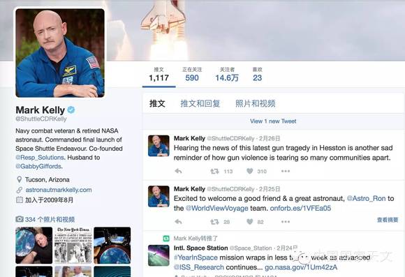 兄弟俩都有Twitter账号,分别是@StationCDRKelly和@ShuttleCDRKelly。他们俩的页面分别是这样的:
