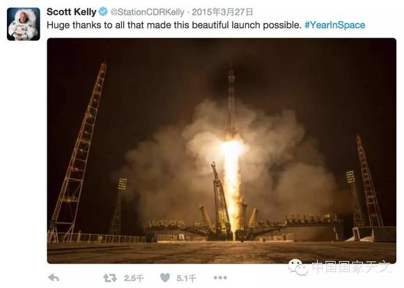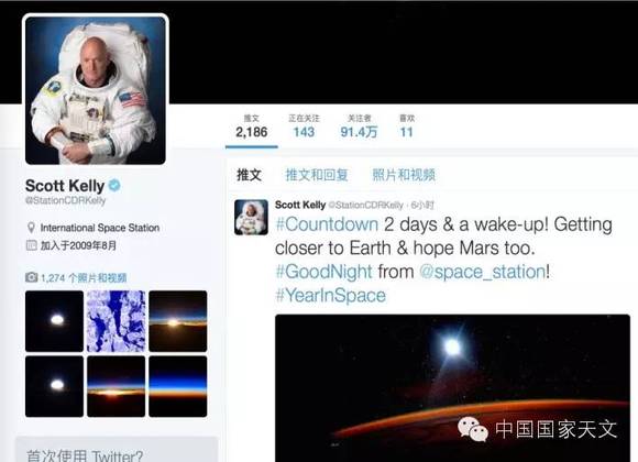 马克基本保持着每日一条推文的节奏,一般是纪念曾经的航天员生活、展示最近参加的活动(他还是国会议员),以及推广#YearInSpace这个话题。