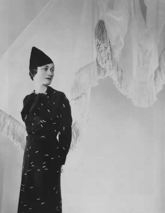 想想吧,如果这世上真有这么一个人,TA长得即便不突出,但TA喜欢你,在意你,并且记得你,然后每次对你的赞美都跟点穴似的,针对你最渴望的地方进行真诚的赞美——试问,这种人到哪儿会不受欢迎呢? 那个时候的沃利斯简直就是一个万人迷,虽然她长得不漂亮,但所有男孩都喜欢她并愿意和她交往,而她本人也不介意被说三道四,开始了一系列令人眼花缭乱的浪漫史。 Wallis Simpson穿着的这条裙子来自Vionnet ,1945年 后来和许多年轻女孩一样,沃利斯迷恋上了传说中的王位继承人——赫赫有名的威尔士王子!她的房间里挂了几十张王子的照片,她还剪辑出所有关于王子的报道,时刻关注着王子的一举一动。