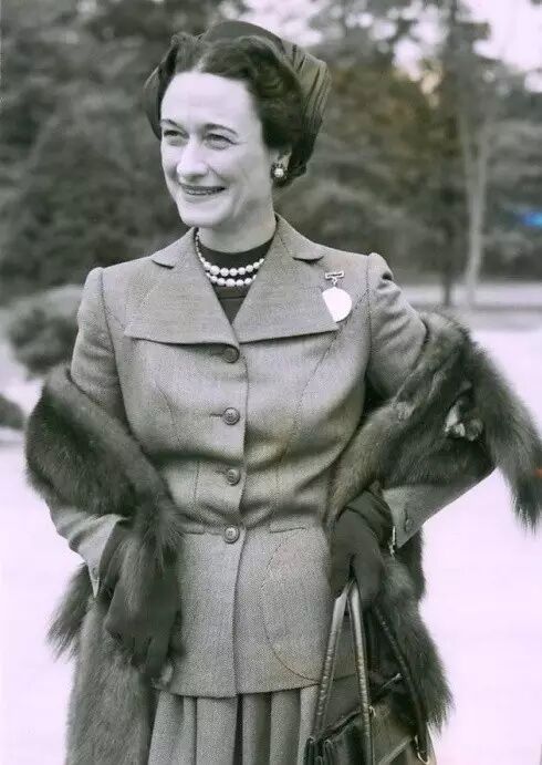而这恰恰是“坏”女人的第二个能耐, 擅长创造富有情趣的生活方式。 Wallis Simpson穿着ChristianDior的西装 工夫不负有心人。1931年6月,威尔士王子换上便装,登上一列便车只身出去游玩。他很快就被火车包厢里一个单身女人深深吸引,这个女人不是别人,就是沃利斯,此时的她已经离过两次婚,被人称为“辛普森夫人”。