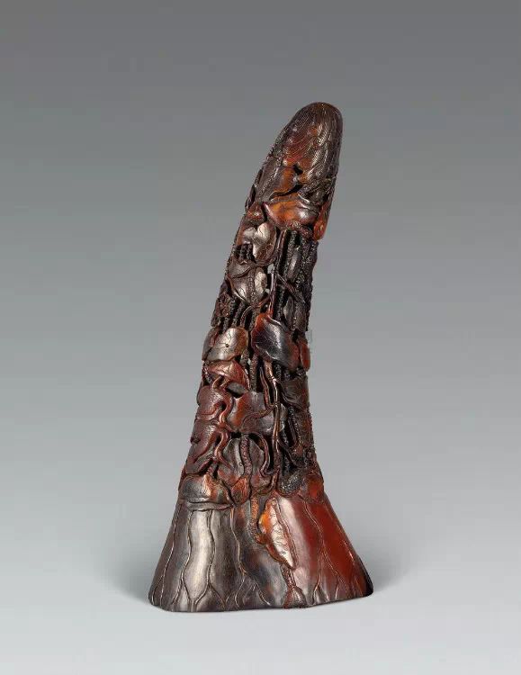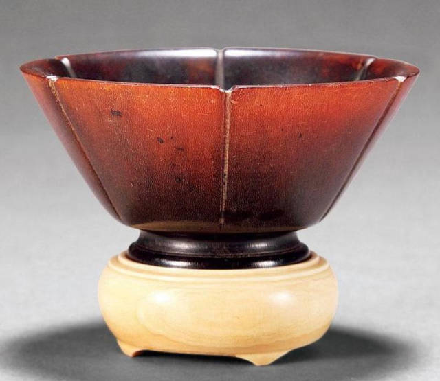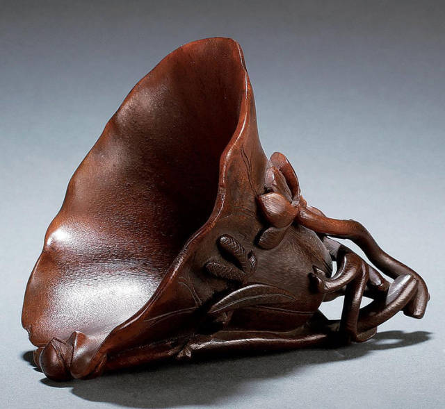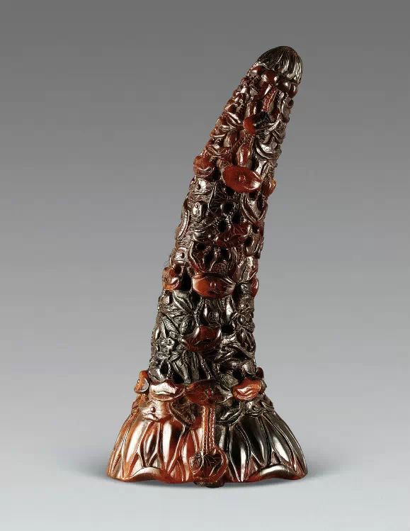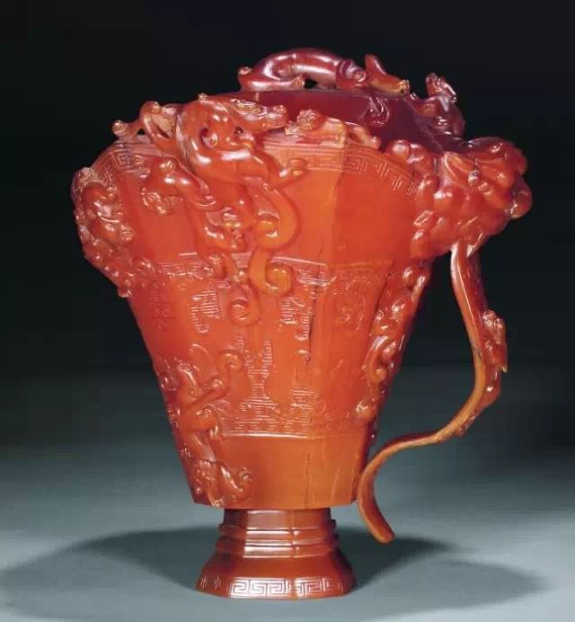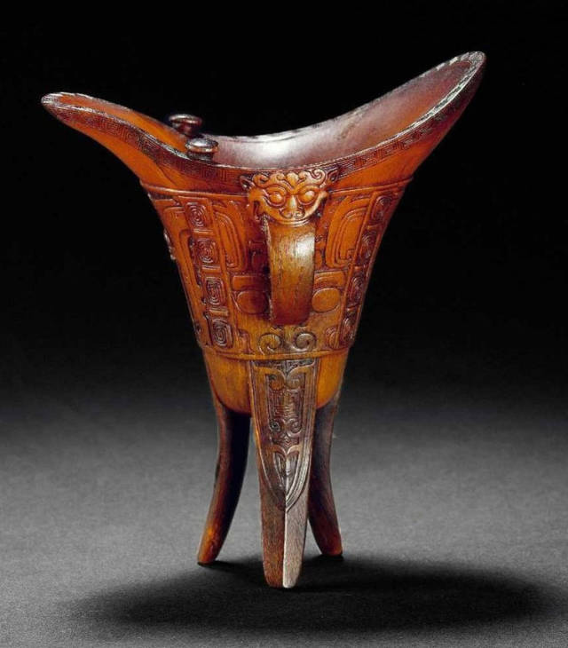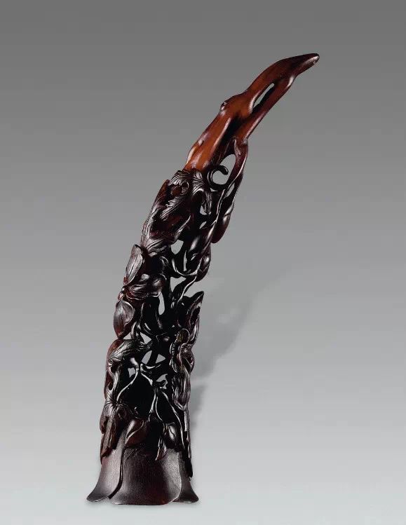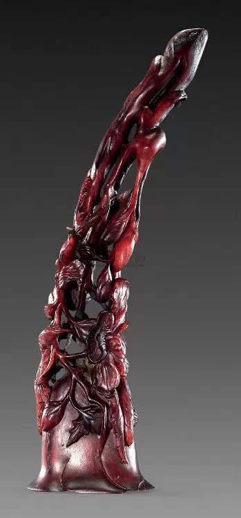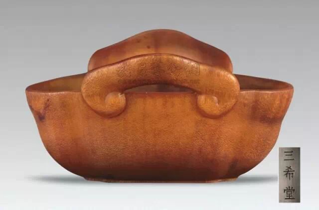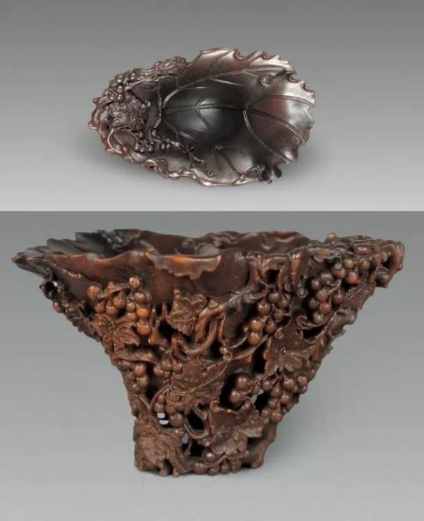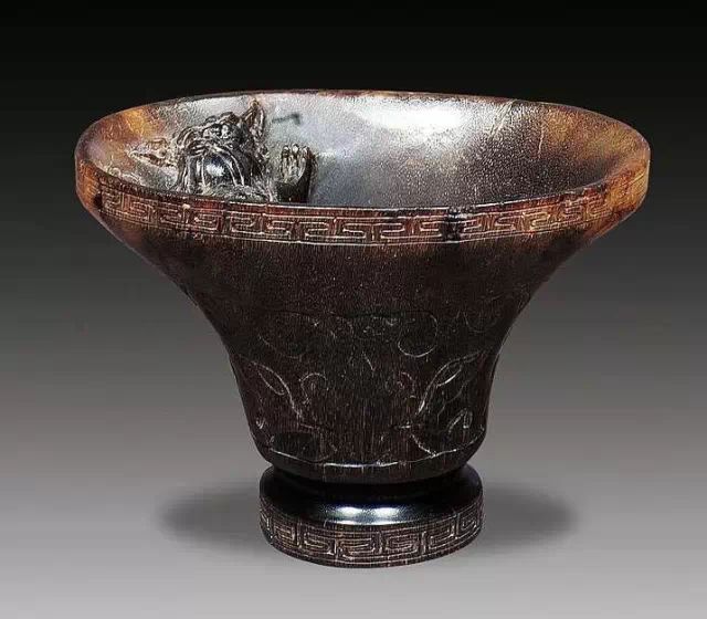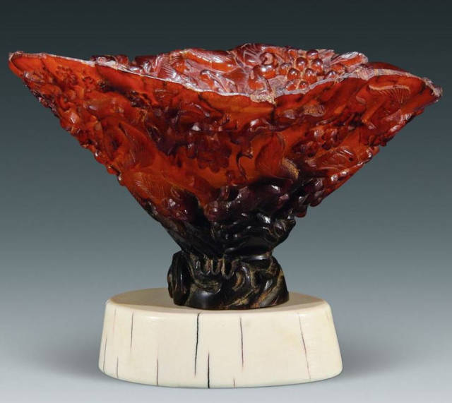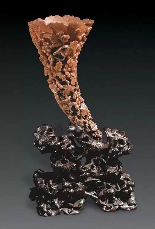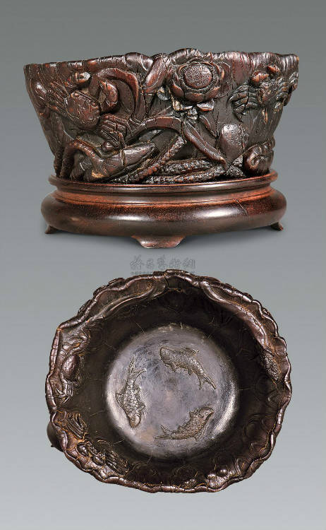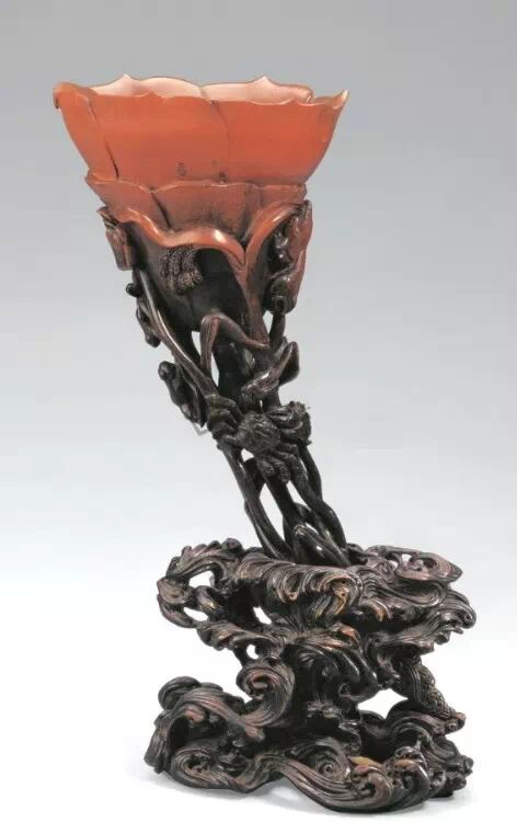 清初的犀角雕刻继承明代的传统风格。因明末着名的牙角雕刻家仍继续从事雕刻工艺。雕刻蟠螭纹和龙纹的犀角杯数量增多。进入乾隆朝,犀角雕的器形种类颇丰,除杯外,有圆雕人物、洗、挂件及仿古器形爵、鼎、羽觞等,雕刻工艺精致至极。清后期,犀角料进口减少,且主要作药材,犀角雕刻艺术遂走向衰落。 (清 犀角花瓣纹碗连象牙底座) 001-清 犀角雕螭龙饕餮纹酒杯 长16.1cm;宽8.9cm;高9.1cm 用十八世纪东南亚犀牛角雕琢而成。色泽浅灰黄色,角尖较深,呈灰褐色。杯呈九瓣花形。口部近椭圆形,流部较宽,窄部透雕螭龙纹把。椭圆形小圈足也呈九瓣花形。虽以花瓣为形,纹饰上却仿古,仿商用青铜器上纹饰。口沿内外和足墙阴刻回纹,身部以阴刻回纹为地雕饰平凸的饕餮纹,并高浮雕两条威猛的螭龙,胫部浅浮雕叶脉纹。清廷匠师将花形和仿古两种主要的犀角杯造型巧妙地融合在一起。犀角具清热消毒,止血滋补之良效,清代宫廷多将其制成酒杯以强身祛病。 002-清中期 雕螭龙犀角杯 003-清 犀角雕龙纹杯 高12cm-RMB 3450000 整器以犀角雕刻而成,呈褐色。敞口斜腹,腹部利用角料自身的凹凸,外壁及口沿浮雕琢出螭龙做成把手,浮雕图案延伸到杯口沿的内侧。雕刻精细,浮雕与刻琢结合,突出了纹饰层次。杯下腹部两侧以祥云、草木等饰之,并雕刻出三层纹饰。整个犀角杯大气沉稳,透出盈盈古意。 004-清•犀角杯 高:8cm重:178克-RMB 246400 以整块犀角制成,角制细润,颜色褐红,包浆厚重润泽。角杯内外口沿处为一圈回纹。杯身中部亦以回纹为地,其上浮雕青铜器之夔龙纹。角杯一边为一高浮雕变形螭龙。爬于角杯口沿,螭龙面部以简洁的设计与刀工琢刻出觊觎酒杯的螭龙面孔。腿足刻饰为云纹,使角杯显得更加生动活泼。 005-清 犀角螭龙纹杯 长18cm;重865克,有裂-RMB 782000 006-清 犀角螭龙杯 宽14.5cm,470g-RMB 690000 杯敞口,造型仿自青铜酒器,整器以整支犀角雕成,取料硕大,色范红褐,包浆温润。内沿处刻回纹,杯身以饰以三层纹饰,自上而下为回纹,浅浮雕兽面纹为地的圆雕夔龙纹和蕉叶纹,只见夔龙攀附于杯身之上,龙头探入杯内,身形灵动,另有几条小龙攀附其间,层次分明,起伏有度,形象生动;与之对应的另一边口沿亦高浮雕小螭龙三条,翻转自如,雕工细腻,栩栩如生。全器包浆温润,阴刻、透雕、浮雕等技法并用,线条流畅,作品静中显动。 007-清 犀角仿古铜杯 高7.5cm-160,000-240,000 008-清 犀角雕螭虎杯 长13cm;高10cm-RMB 300,000-400,000 009-清 雕龙纹犀角杯 6×8cm-RMB 126500 010-清 犀角雕饕餮螭龙杯 高15.8cm,437g,象牙座-RMB 300,000-300,000 011-清 犀角雕夔龙螭虎杯 长13.8cm,重约470克-RMB 287500 犀角自古在我国就已十分珍贵,而犀角雕刻品更是被誉为奇珍异宝,被皇室贵胄和达官贵人用以炫耀财富。其多随形雕作酒杯,不仅造型精美,且因犀角本为名贵药材,故而更显其优。此件犀角杯材质凝透,包浆润泽,轮廓线圆滑柔和,纹饰古雅适度,颇具古韵,为清代十分难得的精品。且杯身螭龙刻画得气势恢宏,苍劲有力,精巧华美,极富艺术表现力,颇具收藏价值。 012-清 犀角雕兽面纹杯 013-清 犀角螭龙小杯 014-清•犀角雕长安乐宜子孙款爵杯 高:14.1cm 重:188g-RMB 575000 015- 清 犀角雕山水人物纹爵形杯 直径16.2cm×高15.3cm,重1100克,带紫檀海水纹座;RMB 392000 犀角雕,通体主要采用浮雕,镂雕技艺,将苍松雕成柄,且上连杯口下至底足,枝头攀附过强入于杯口内壁,古趣横生,春意盎然。外壁浮雕饮马图,仿自赵孟俯之饮马图。此杯将圆雕、浮雕、镂雕等技法融为一体,莹然欲透,刻工高超,刀法精绝,纹饰细密精美,既有仿古格调,又有创新的意境,为犀角雕刻的精品。 角雕是用兽角雕刻和磨制而成的工艺品。清代,由于工艺美术突飞猛进的发展,雕刻工艺达到了一个新的高峰,精湛的雕刻艺术扩展到犀角材质中来,这样,形状众多,花纹各异的犀角杯就脱颖而出,闻名于世。 所配之底座,乃小叶紫檀材质,质地细腻,通体镂雕海浪纹,以护固杯身,别致精巧,古朴典雅。此犀角杯工艺精湛无比,所雕诸景生动逼真,富具立体感,为清代雕刻不可多得的绝妙佳品,弥足珍贵。 016-清 犀角山水人物杯 重100.9g 犀角杯的雕刻,首先要根据它原材料的形状条件,此杯选用上等犀角为材料,缜密构图。采用高浮雕技法,雕刻一幅山水人物图,老者携童子泛舟于湖水之上,对岸一老者坐于树下,周围竹林茂盛、苍松挺立。将一幅优美闲逸的山水人物画跃然于此杯之上。细部刻画极为精细,人物表情生动,充分体现了其高超的技法,整件犀角杯风格古朴雅致,是件难得的清代犀角精品。 017-清 犀角雕高士雅集纹杯 高9cm;重190克-RMB 649600 杯为犀牛角制成,色如深色琥珀,有着一层柔美的琥珀光泽,富有灵气。此杯采用浅浮雕、深浮雕、镂雕和圆雕的等多种雕刻工艺手法,层次分明,错落有致,作工精细,显示了作者精湛的工艺水平,当为犀角中的精品。其画面置于深山老林间,作者以通寻的方式,将杯镂雕成二三层,苍松耸立,松枝直入杯口之入,曲折婉转,杯璧上,小路蜿蜒,直入杯底,松柏、桐树、枫树、间插在山岩之间,虬枝怒干、雄健苍劲、老林古松,参天敞日,极具幽静之意,山间崇山峻岭间隐约露出亭台楼阁,似通往人间仙境,杯底深圆,角质细润密实,在不惜浪费珍贵的犀角材料,运刀流畅,刀锋犀利,画面生动,令人叫绝,是犀角雕刻中极高趣味的作品。 018-清 犀角雕山水人物杯 宽12.7cm-R