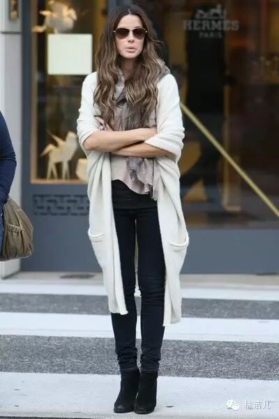 长款的针织开衫对于又高又瘦的姑娘来说,简直是百搭单品,铅笔裤一定是穿它时的必备。 不喜欢太修身的款式,喇叭裤或者哈伦裤也别有一番趣味。 搭配长裙,优雅又带点随意的感觉。 搭配短靴,休闲与硬朗的碰撞,不管是选择裤装还是裙装,都带着点中性的叛逆味道。 无袖针织开衫
