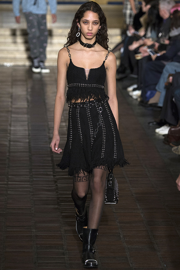一般情况下,暴露都遵循着只透半身的铁则,即无袖上衣一般就搭配长裙长裤。但是在王大仁的这一个秋冬系列,我们可以看见他用不同面料和结构,把透视设计出了叛逆清新的感觉。