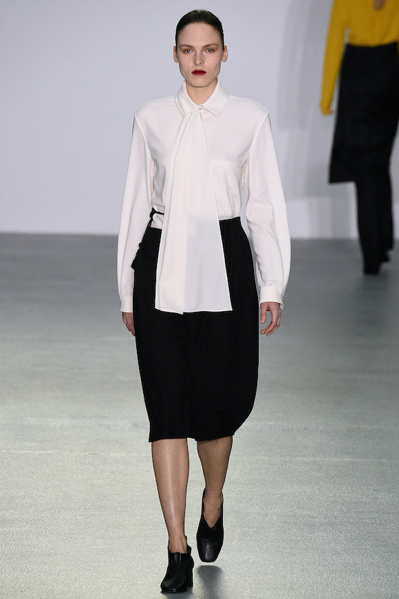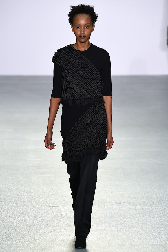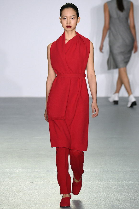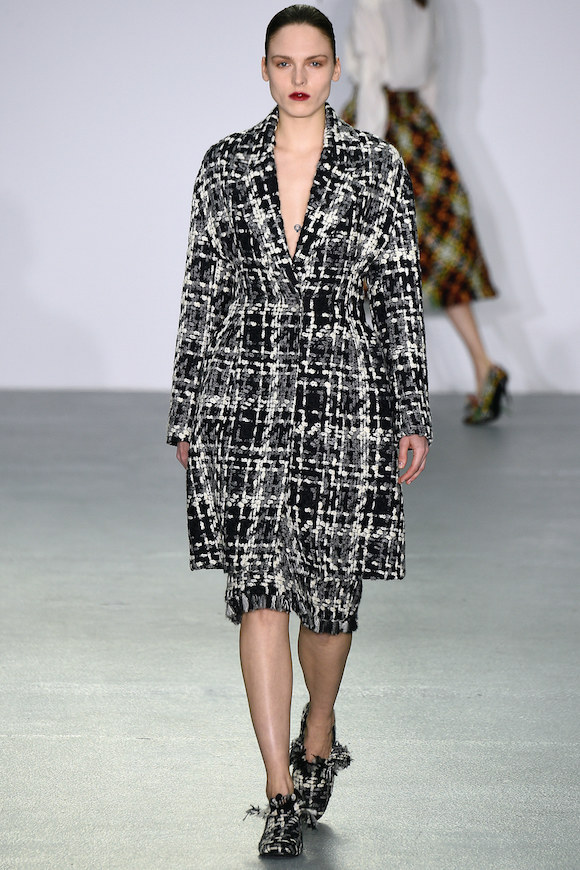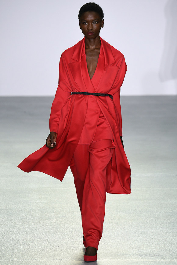 和 2016 春夏系列发布时一样,韩裔设计师 Jackie Lee 的个人品牌 J. JS LEE 又一次为伦敦时装周做了开场秀。不过,比起上一次带着些收敛的“温柔”,这一次发布秋冬系列的 J. JS LEE 显得更有自信和力量——开场就连走了三身饱和度极高的红色调设计,观众想要不被吸引都难。而随后出现的全黑、全白、明黄及格纹,也都给人以色彩厚重,视觉冲击大的感觉。
