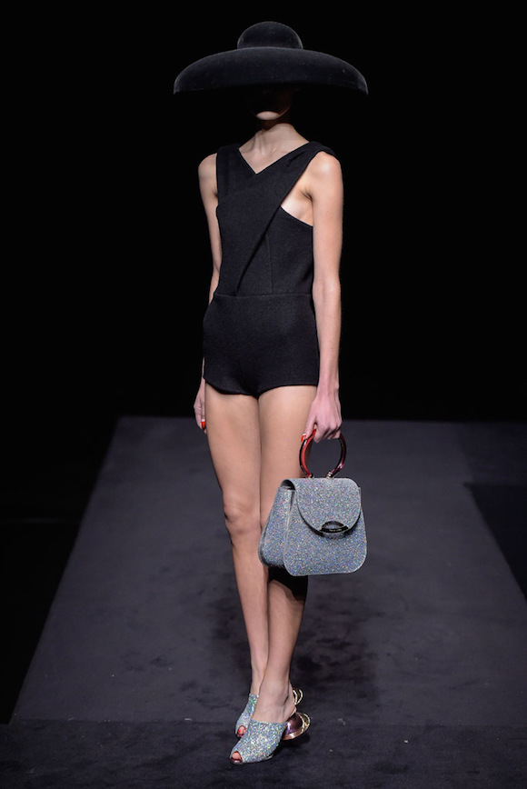 这一季的鞋子和包袋基本是在品牌经典款的基础上,通过使用有反光性的材料,比如水钻、丝绒等,来让鞋子变得较之前不同。同时,这一季还出了不少可爱的包袋商品,比如宇宙飞船造型的背包、印着相关主题绘画的手袋等。但不得不说,最终,整场秀还是难免给人以形式上用力过猛的感觉。事实上,那些在追光灯下闪着金光的包和鞋子,真的有点“过于耀眼”了,甚至于不少观众想看清楚都觉得有些难。