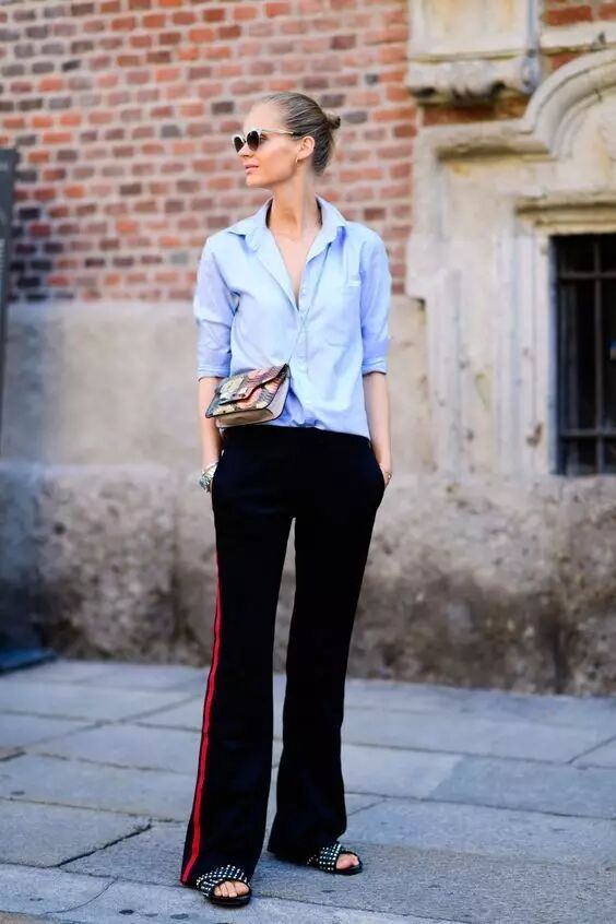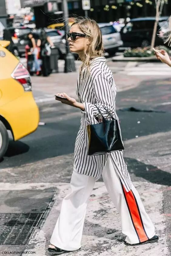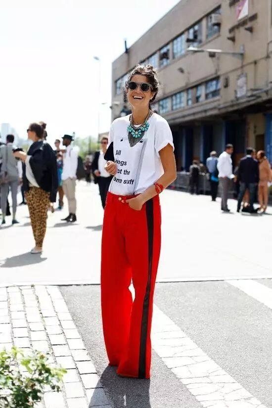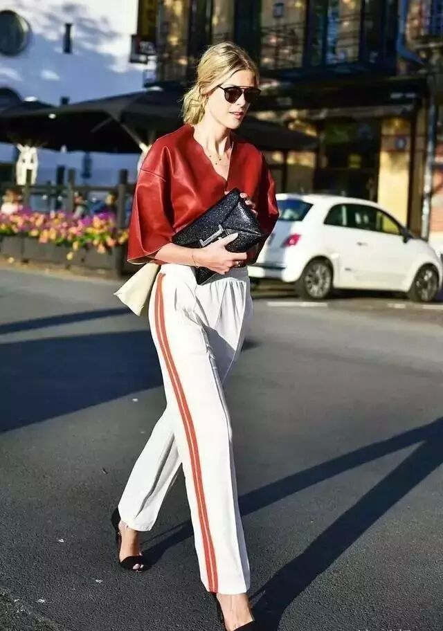 说到这两年在时尚圈火的一塌糊涂的单品,阔腿裤绝对算其中一个。 ▼ 关于阔腿裤,搭姐也推荐了好多次了。而今年阔腿裤又又双叒叕升级了!加入了时髦设计感的阔腿裤,变得更有型,对于穿腻了基础款阔腿裤,一定要入手这些凹造型必备款!一起跟随搭姐来看看,绝对不会让你失望的~ 开叉阔腿裤可以说是Gigi穿火的,虽然是一身黑色,但开叉设计形成的大面积露肤,反而看起来性感的很高级,日常穿时髦而不夸张。▼ ![]() 日常穿不够开叉裤的Gigi,走红毯,也要用开叉裤赢很大。▼ ![]() 中国最会穿衣的女明星小宋佳依然逃不出开叉阔腿裤的魅力,虽然整体造型偏成熟干练,但开叉的小小细节却不乏小诱惑。▼ 最近走简约风的超模KK,也喜欢穿开叉裤出街,简约的基础配色,却不会无趣。▼ 最常见的直筒型阔腿裤,是最不挑人的款,加入了开叉设计会更为显瘦。跟小伙伴们走在街上,开叉的阔腿裤让你更吸晴。▼ ![]() 背影也能美成一道风景。▼ 开叉的长度决定了你想表达的气质,像Gigi选择的这种到臀部的侧开叉,是最为性感的也最为清凉的款,适合出街旅行,但不太建议日常,很容易一不小心就走光。▼ 最适合日常穿着的,应该是这重在小腿部分的侧开叉,既能增加轻盈感,又不会过分夸张,小腿是腿部最纤细的部分,对于一些微胖身材的人来说,也能完美驾驭。▼ 搭一双一字凉鞋就很大气。 还有一种更为小巧的开叉,将脚踝修饰更为纤细精致。▼ 除了侧开叉前开叉更显腿长,之前搭姐就告诉过大家,超长阔腿裤+高跟鞋可以帮你穿出超模般的长腿比例,而这种前开叉设计,摒弃了普通阔腿裤的冗长感,让超长款也变得十分轻盈。▼ 对于娇小的女生,选择七分设计的阔腿裤更好驾驭。▼ 材质的选择上,轻薄的材质更显轻盈,像雪纺就很适合夏天。▼ 比较挺阔的材质增加视觉膨胀,反而会显胖,尽量避免。▼ 颜色上选择基础色比较好,黑白色适合日常也足够百搭。▼ 喇叭型的开叉阔腿裤是女明星们的最爱,宋茜绝对是喇叭裤的忠实粉丝,出席活动要用它扮美。▼ 机场私服要用它扮酷。▼ 这种喇叭型的阔腿裤非常适合组合西服套装。中性感的西装外套,搭配浪漫的喇叭裤,既能够演绎干练的率性感,又不失女人味,日常穿也是非常吸睛的搭配。▼ 超长款的适合搭配高跟鞋,营造大长腿。▼ 而短款的喇叭裤更适合日常,开个叉就能美过路人十条街~▼ ![]() 名媛Olivia Palermo也不能错过这款,搭配绑带鞋更显气质。▼ ![]() 牛仔开叉裤充满青春力,袁姗姗这一身T恤+阔腿裤的搭配超减龄,开叉的设计让阔腿裤变得更有趣,秒杀一大批基础款牛仔。▼ 宋茜最爱牛仔开叉裤,这种不规则的开叉设计更具不羁的时髦感。▼ 在机场穿着的这种侧开叉的牛仔裤,街头风的帅气感更强。▼ 同样是开叉设计,紧身裤跟阔腿裤相比,时髦感就逊色多了。▼ 除此之外,阔腿牛仔裤比紧身牛仔更显腿长,开叉设计也更为突出。▼ 你也许会说,这不就是我们以前上学穿的校服吗?但别急着嫌它土,今年侧条纹阔腿裤,绝对是时尚圈最火的时髦单品!▼ 究竟有多火,看女明星们有多爱它你就知道了。李小璐带着甜馨出游,身穿侧条纹阔腿裤,既舒适轻便方便照顾孩子,还能穿出潮妈的时髦感,一举两得。▼ 运动也要Hold时髦,用侧条纹阔腿裤就办得到。▼ 张俪用条纹裤搭配了条纹上衣,看似简约的穿搭却很有细节感。▼ 白百合选择了同样的穿搭套路,配色再大胆一些依然很大气。▼ 你可以学习小宋佳的套装搭法用它扮酷。▼ 也可以学习高圆圆的同色搭配法,美成仙。▼ 侧条纹裤之所以这么火是在于,它具备阔腿裤穿出长腿的功力,让你分分钟拥有洒脱帅气,干练侧条纹的加入,让你拥有笔直的腿部线条,在配色上也更为丰富,搭配上就更有趣味性。▼ 时尚博主的侧条纹阔腿裤搭配法更出彩,奇思妙想的Leandra Medine大胆的选择了红色侧条纹裤搭配白T,夸张的配饰充满度假风。▼ 名媛奥利维亚把都市丽人风格进行到底,看起简约的搭配细节感十足。▼ 贝嫂是气场职业女的穿搭榜样,黑白配看似中规中矩,侧条纹为整体搭配带来了高级的设计感。▼ 一般黑色阔腿裤最适合大家驾驭,但太过沉闷的配色难免给人死板的印象,不如选择贝嫂这种蓝色条纹设计,搭同蓝色衬衫,配色上相互呼应更具高级感。▼ 搭一双清爽的白鞋子,整体造型看起来更加轻盈。▼ 拼色条纹更适合夏天,即使是黑色为主色,也不会看起来沉闷。▼ 今年超流行的柠檬黄作为侧条纹配色,瞬间点亮你的整体搭配。▼ 而搭姐最最推荐的,则是红黑搭配的阔腿裤,明艳的红与稳重的黑色,组合成独具时髦腔调的高级感。▼ 搭配衬衫,完美Hold住职场时髦装扮。别忘了把衬衫塞进裤子里,提高腰线比例的同时气质也显得更加干练。▼ 搭配卫衣,街头风十足的酷女孩。▼ 入秋以后搭一件小外套,照样气场开挂。▼ 时装精们可以大胆的选择红色上衣形成呼应,整条街都美不过你。▼ 蓝色为主色的阔腿裤比黑色更加清爽,也很好驾驭,比较推荐夏季穿。▼ 注意:如何把这种看似很像校服的侧条纹穿出时髦感,重点就是要搭配高跟鞋,气场一下子就提升上来。▼ 之前搭姐就说过,白色阔腿裤最适合夏天,而加入侧条纹的白裤子,更具色彩感,相比纯白色更好驾驭。▼ 由于白色的包容性,侧条纹可以选择明艳的亮色或者基础色,日常穿都非常好看。▼ 而搭姐上面介绍的开叉设计,在侧条纹